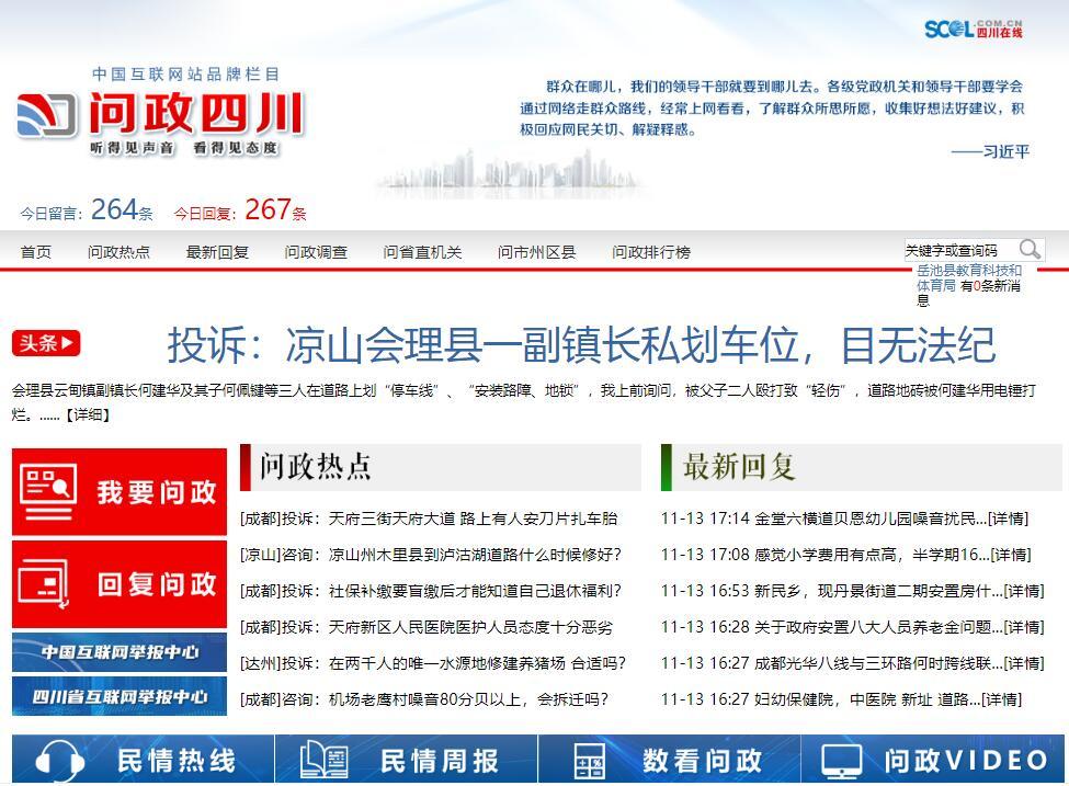 四川日报全媒体还紧密结合自身优势,发挥舆论监督作用,搭建两大践行群众路线的平台:问政四川(←点击查看平台)和民情热线 (←点击查看专栏)。“问政四川”侧重监督政府职能部门慵懒散浮拖等不作为现象,“民情热线”则聚焦与促进民生问题的改进,两大群众路线工作平台互相联动、互为支撑,形成了走好群众路线的合力。其中“问政四川”日均收到网民留言400条左右,全省入驻平台的账号达3600余个,覆盖了各级政府职能部门。