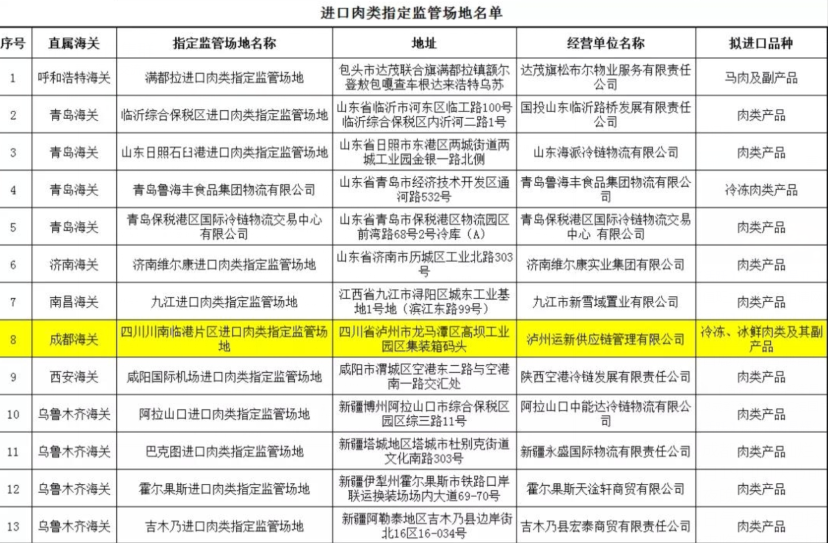 2019年9月19日,国家海关总署公布结果,川南临港片区进口肉类指定监管场地顺利通过验收。