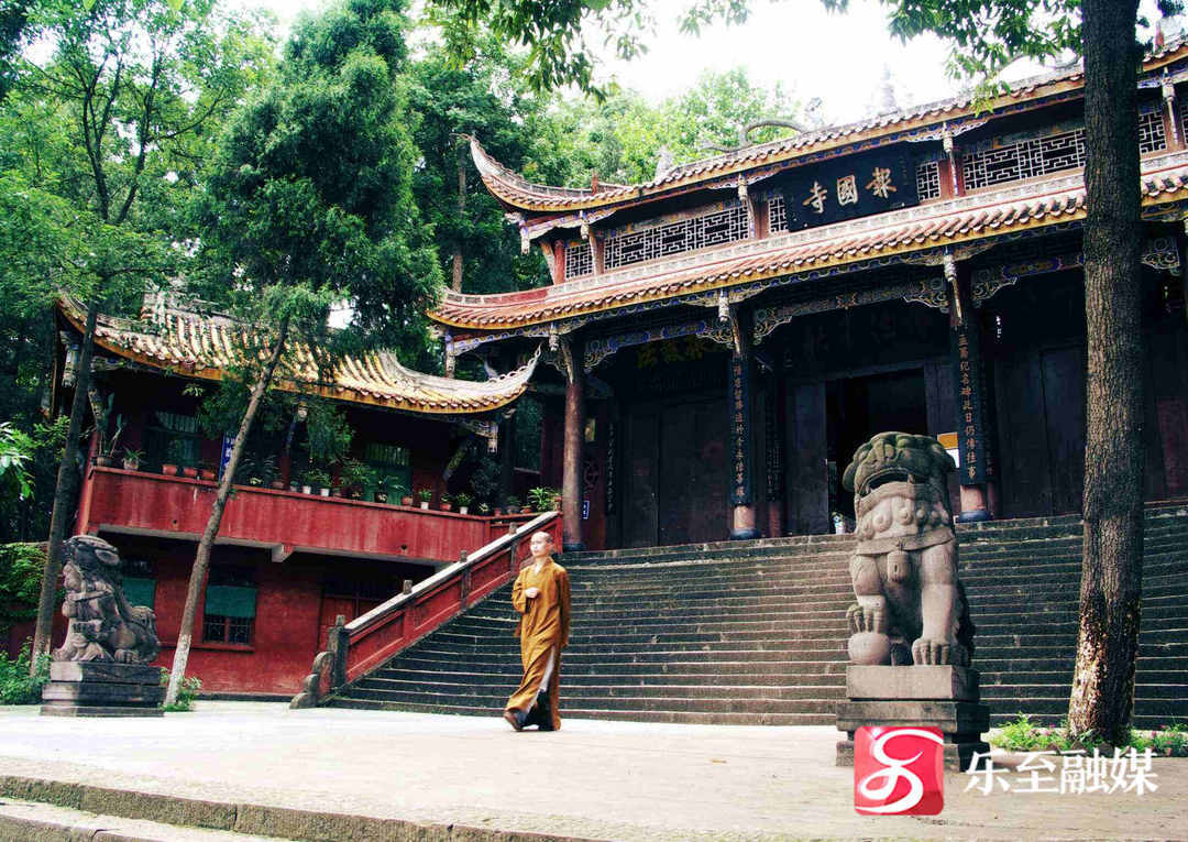 报国寺始建于隋开皇二年(公元582年),这座千年古刹,历尽沧桑,几度兴废,报国寺已成为禅修道场,如今终使蜀中现存不多的千年古刹历劫重光,寺内建有天王殿、大雄宝殿、观音殿、地藏殿、祖师殿等五重殿堂。主要供奉有弥勒佛、四大天王、韦陀菩萨、释迦牟尼佛、药师佛等诸佛菩萨像及思摩、本空、离欲等祖师像近六十尊,造像庄严生动。其中,有从缅甸迎回大小玉佛二十三尊,其中接引佛高达四米,重十余吨,实为珍稀文物。目前,在国内寺院中,拥有缅玉佛像数量之多,佛像之大,首屈一指。现报国寺属于国家3A级旅游景区,被誉为远近闻名的“蜀中净土”和朝拜观光的胜地。