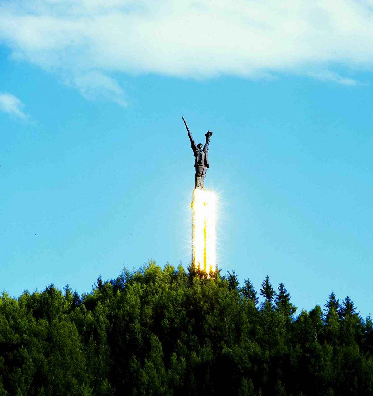 纪念碑前的一段文字显示,这座纪念碑高41.3米、重10吨,基座为2.5米高的汉白玉,碑身为亚金铜贴面的三角立柱体,碑顶一位红军战士双手高举,一手持花,一手持枪,寓意红军长征的胜利。