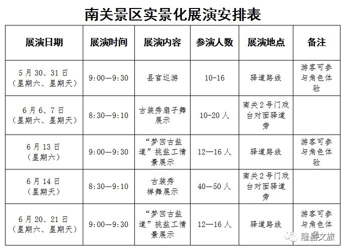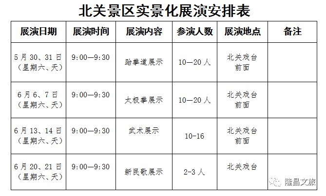演出时间表为大家奉上