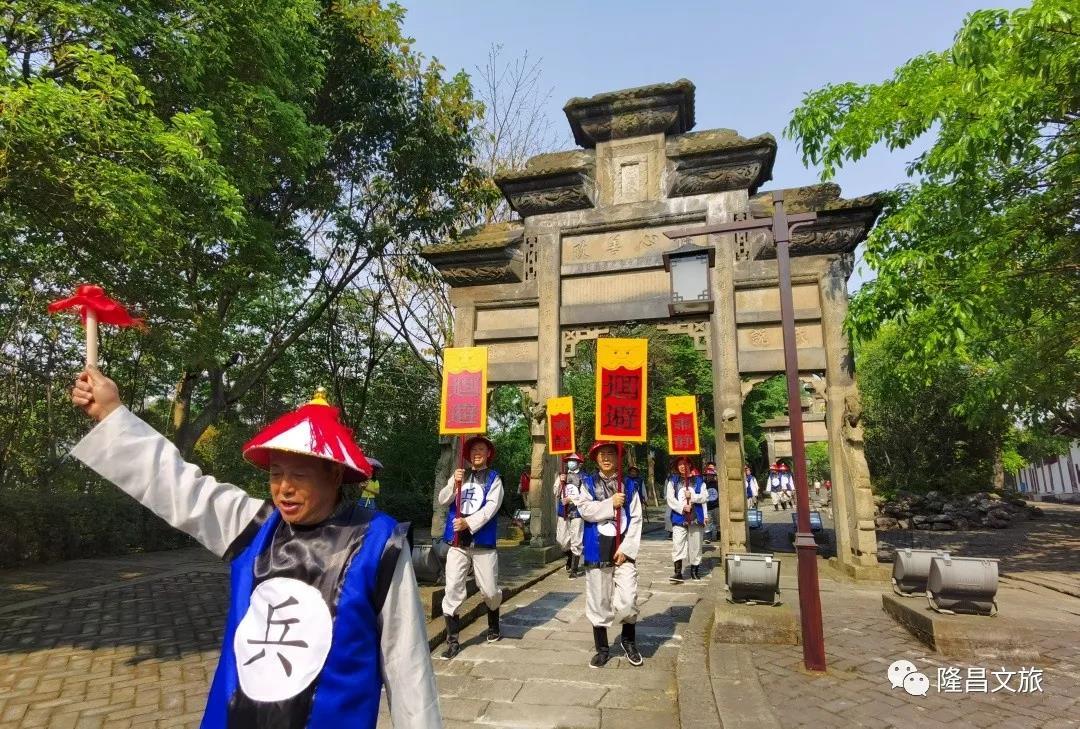 隆昌石牌坊南北关景区游客精心准备的实景化演出。图为县官巡游。(来源:隆昌文旅)