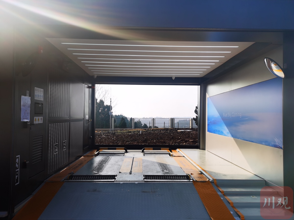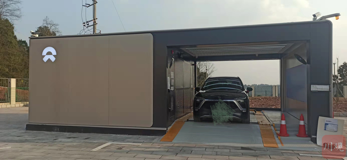 该换电站位于成资渝高速乐至南服务区,由蜀道集团下属蜀道交通服务集团公司与蔚来公司合作建设。与常见的高速公路服务区充电站不同,换电站是直接更换新能源汽车的电池。在该换电站实现了车主一键自助换电,电池双轨道进出同步交换极速换电,车主无需下车,仅用几分钟,即可满电出发,且续航能力达400至600公里。