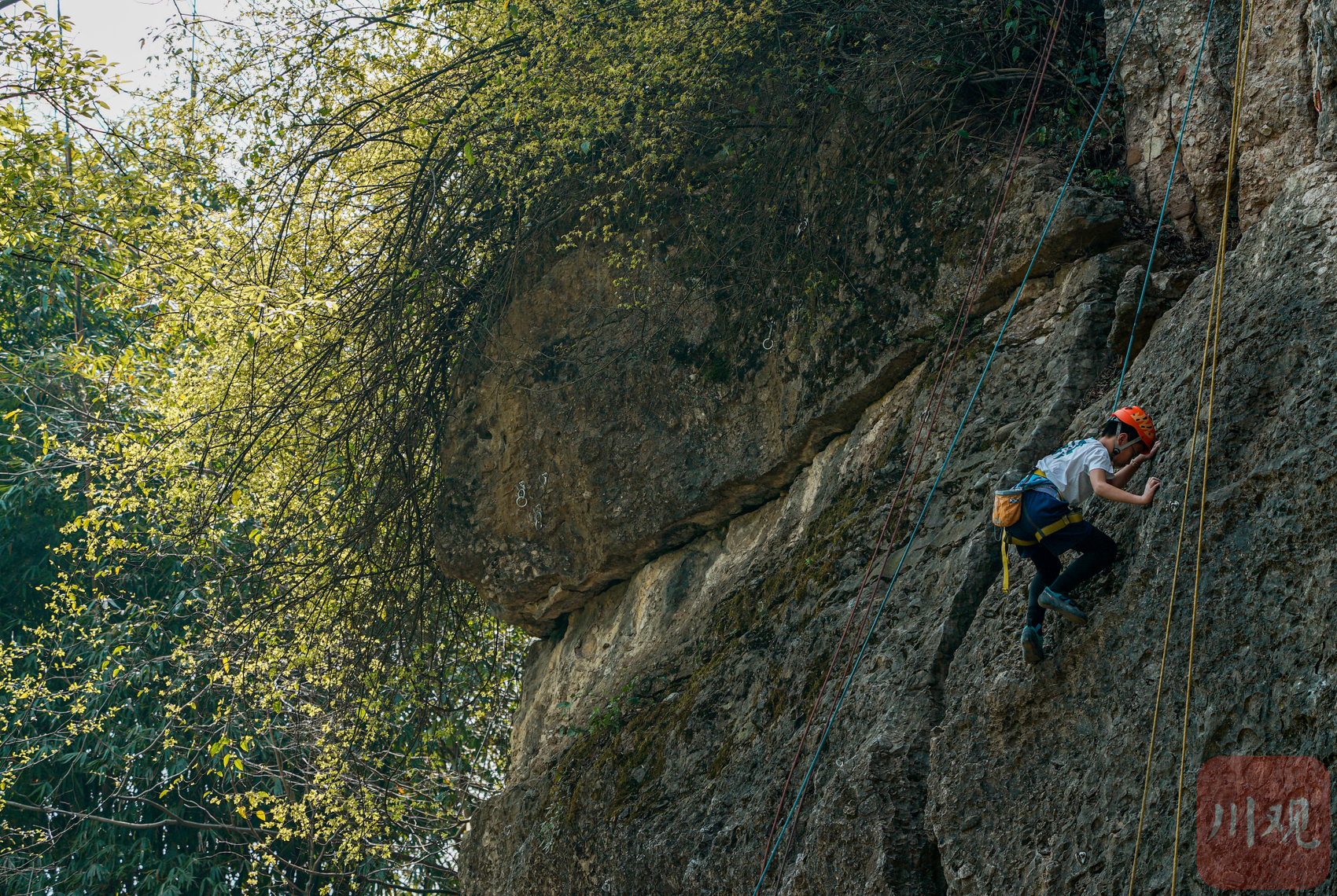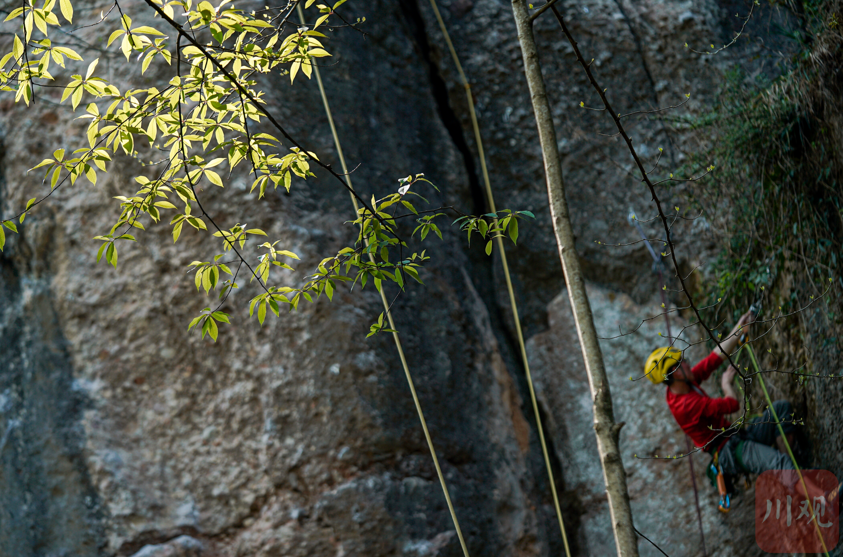 春暖花开时,万物吐绿,韶光正好。每到周末,成都都会有不少攀岩爱好者相约野外攀岩。3月13日,成都市大邑县猴子岩攀岩基地迎来不少攀岩爱好者的光临。在这里,攀登者手脚和身体协同发力,采用抓、握、挂等用力方法向上攀登,与大自然亲密接触。