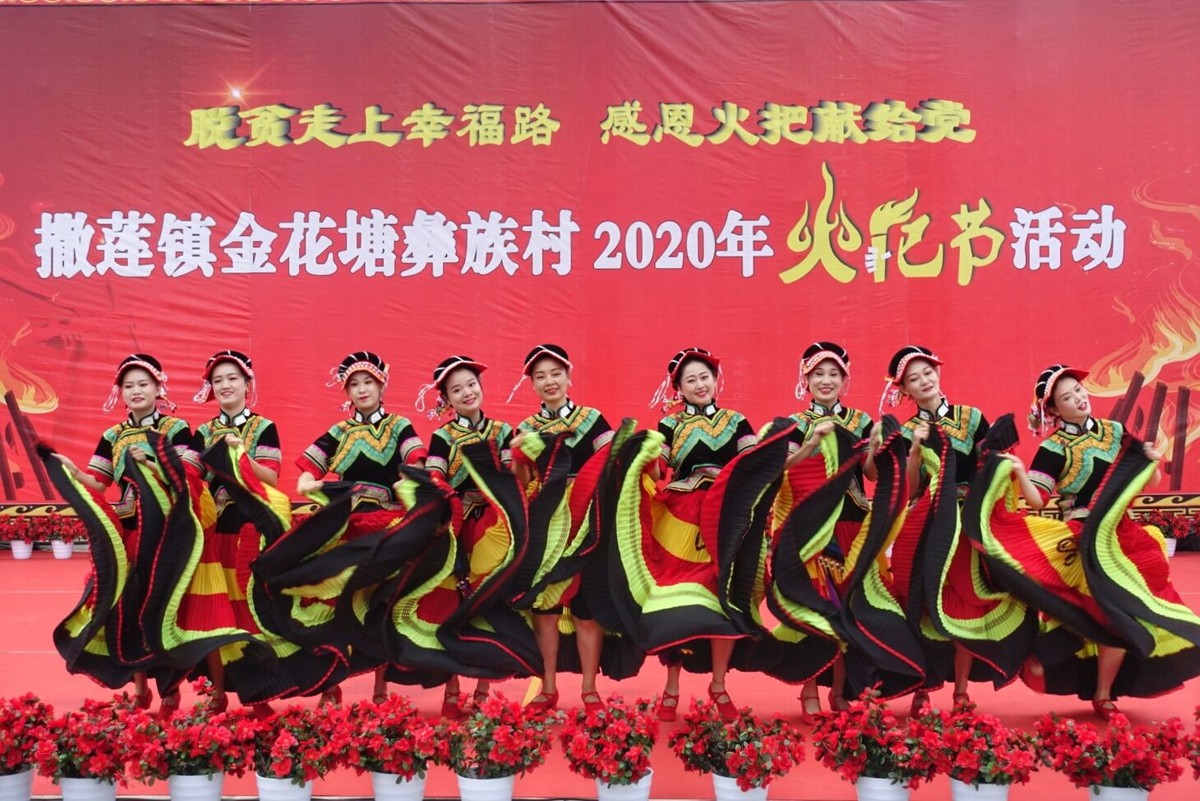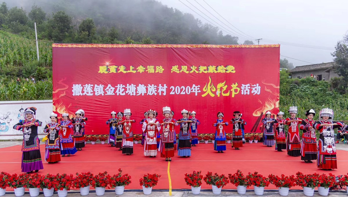 8月13日一早,攀枝花市米易县撒莲镇金花塘彝族村便热闹起来。“今天村上有火把节活动,就在火把广场!”刚到村口,热情的村民们便将来客迎进村,穿着民族服饰的彝族姑娘成群结对,走出家门庆祝一年里最隆重盛大的传统节日。除了金花塘村,米易县以乡镇为单位,在白坡彝族乡油房村、湾丘彝族乡热水村彝族村、白马镇高龙村等乡村,开展形式多样、内容丰富的火把节庆祝活动。