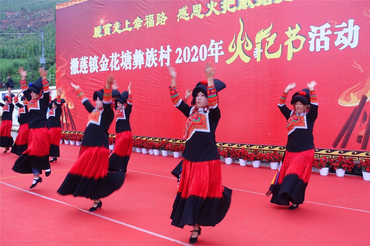 “快看,这里是扭扁担的,赢得人还有奖品,大家都特别开心,等会儿村上还要演一台晚会!”金花塘村村民拉马哈体捧着手机录制微信小视频,“要给在凉山的亲戚们发过去,让他们一起看看。”