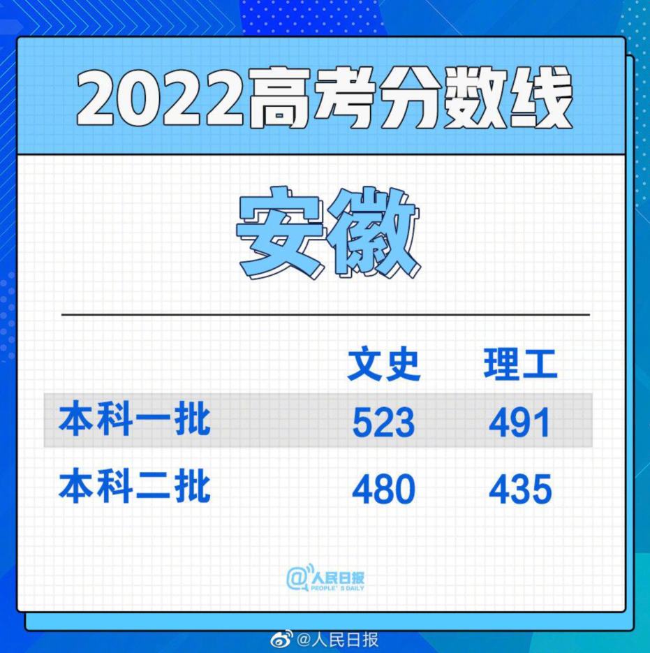①本科一批:文史523分,理工491分;②本科二批:文史480分,理工435分。