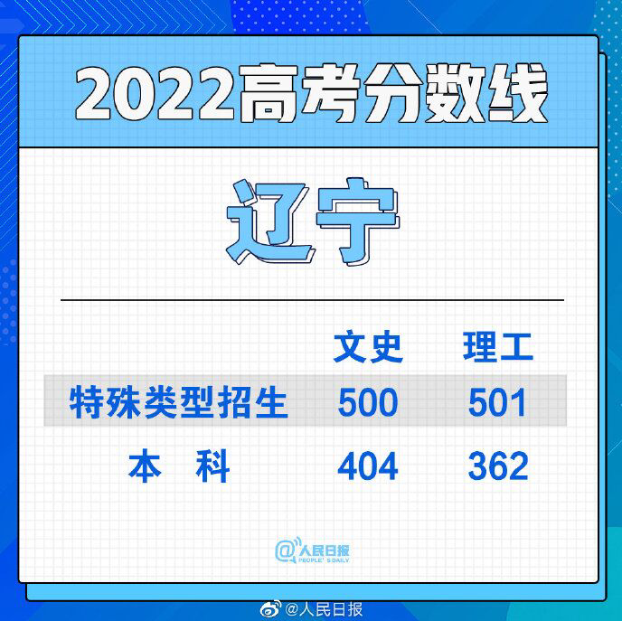辽宁省2022年普通高等学校招生文化课录取控制分数线公布: