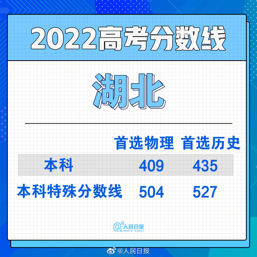 6月25日,湖北省招办发布《省招委关于湖北省2022年普通高校招生录取控制分数线的通知》,本科首选物理409分,首选历史435分。