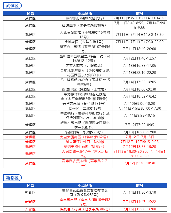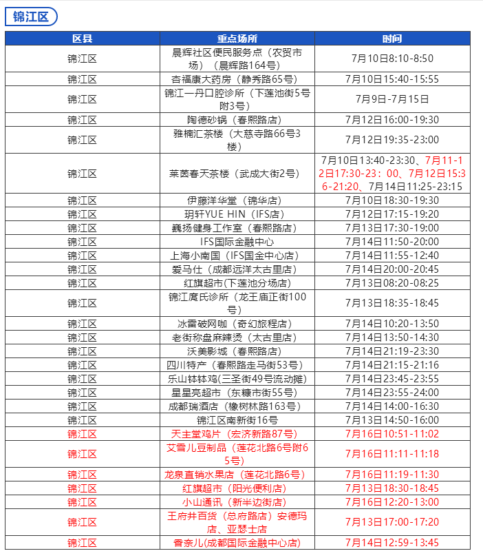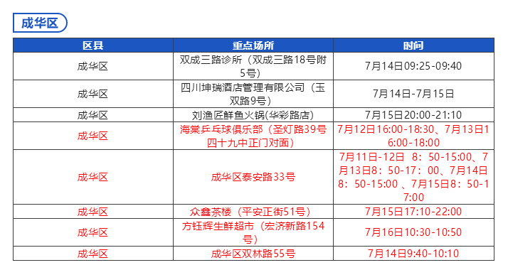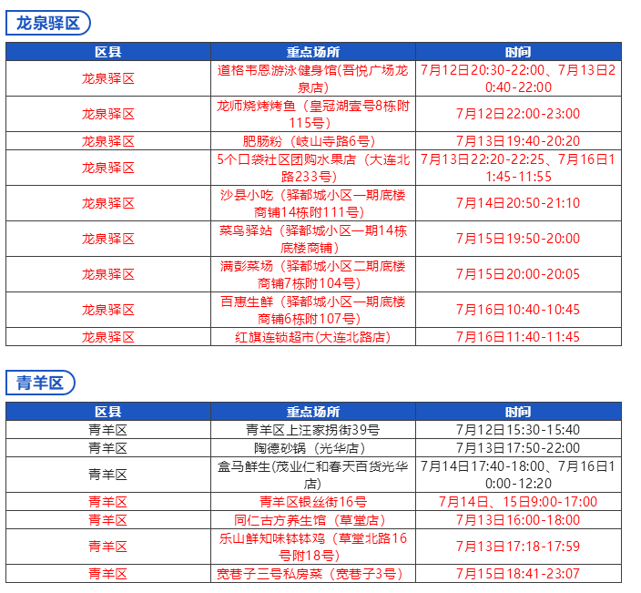 《成都市“0715”本土疫情病例活动轨迹风险点位一览表》数据更新至:2022年7月18日12时