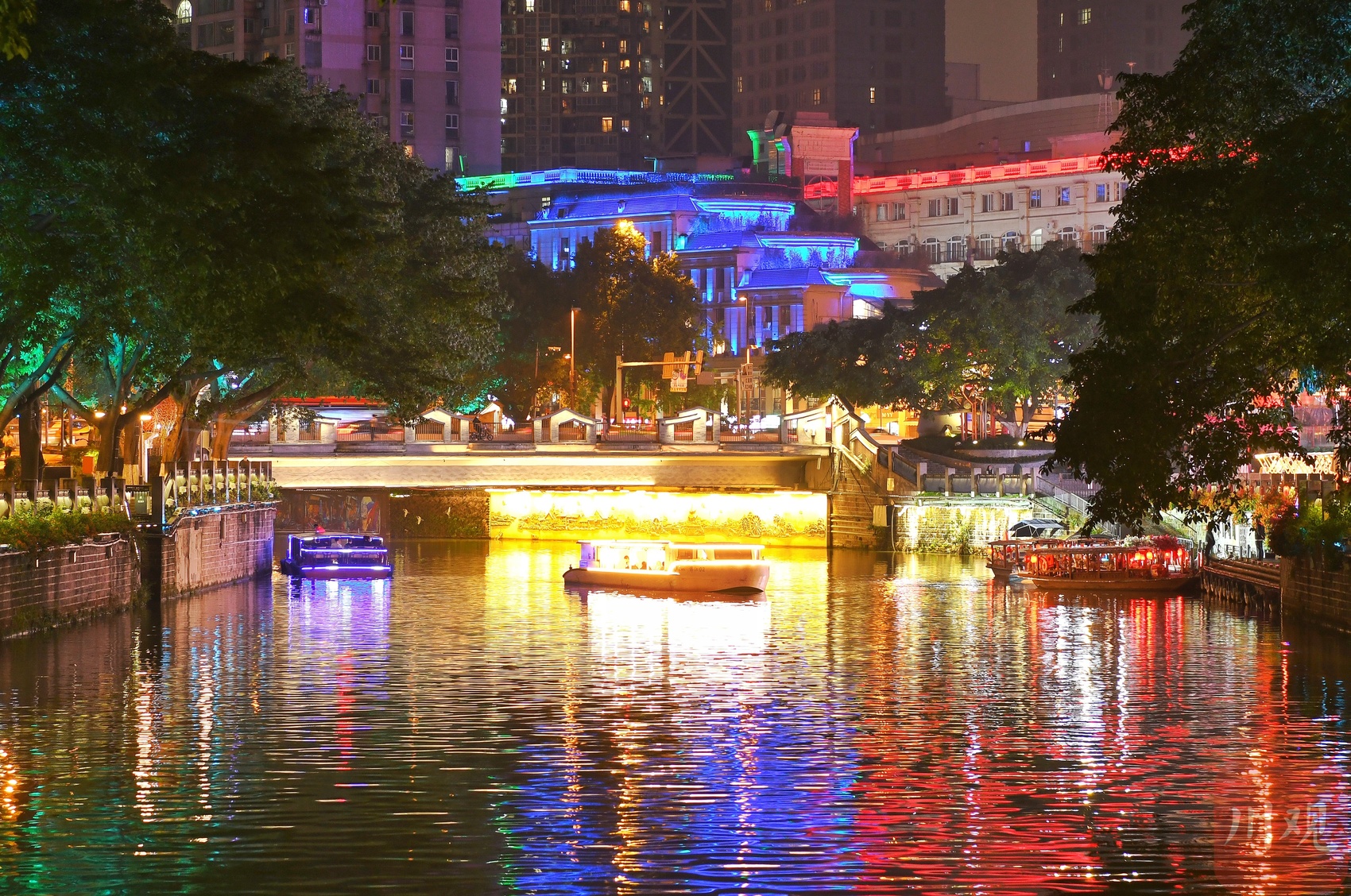 夜色斑斓的锦江水