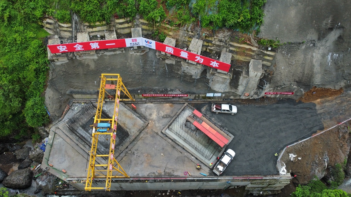 该桥主墩位处地震烈度8度区域,右侧为古滑坡体,左侧临河临崖,为减少施工过程中对古滑坡体的扰动和周边环境的破坏,参建者多次现场踏勘,组织专家论证,采用“深井爆渣快速清运技术”和专业设备进行排险、出渣。