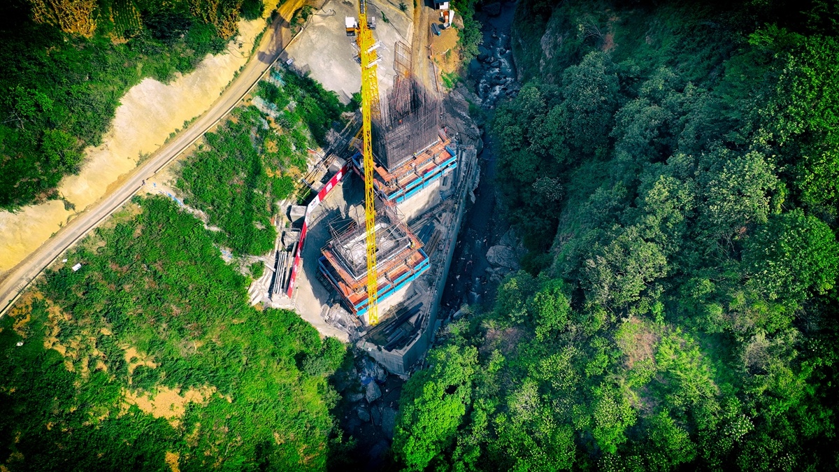 鸡公里1号大桥位于凉山州雷波县,全长631米,主墩基础采用桩墩一体化方墩,其截面面积78.1平方米,是目前全国横截面积最大的山岭桥梁桩基础,左幅3号主墩墩基更深达41米,高73米。