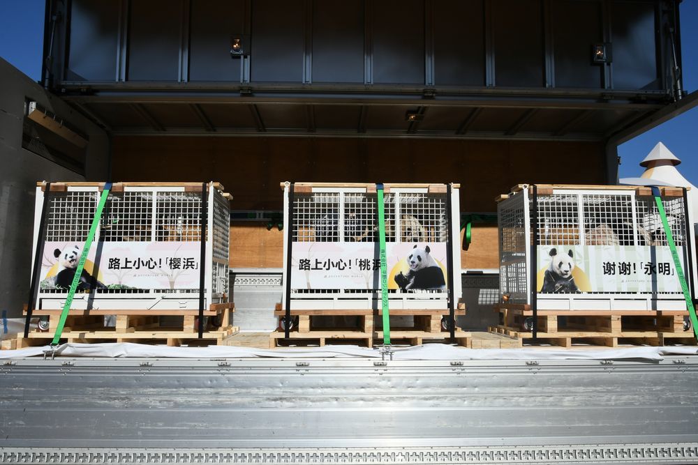 特别是“香香”,随行护送“香香”回国的两位饲养员均来自日本东京上野动物园,是陪伴香香长大的“伙伴”。据悉,在登机之前,饲养员特意为“香香”准备了大量的竹子、饭团等食物,以保障运输过程中“香香”的饮食需求。