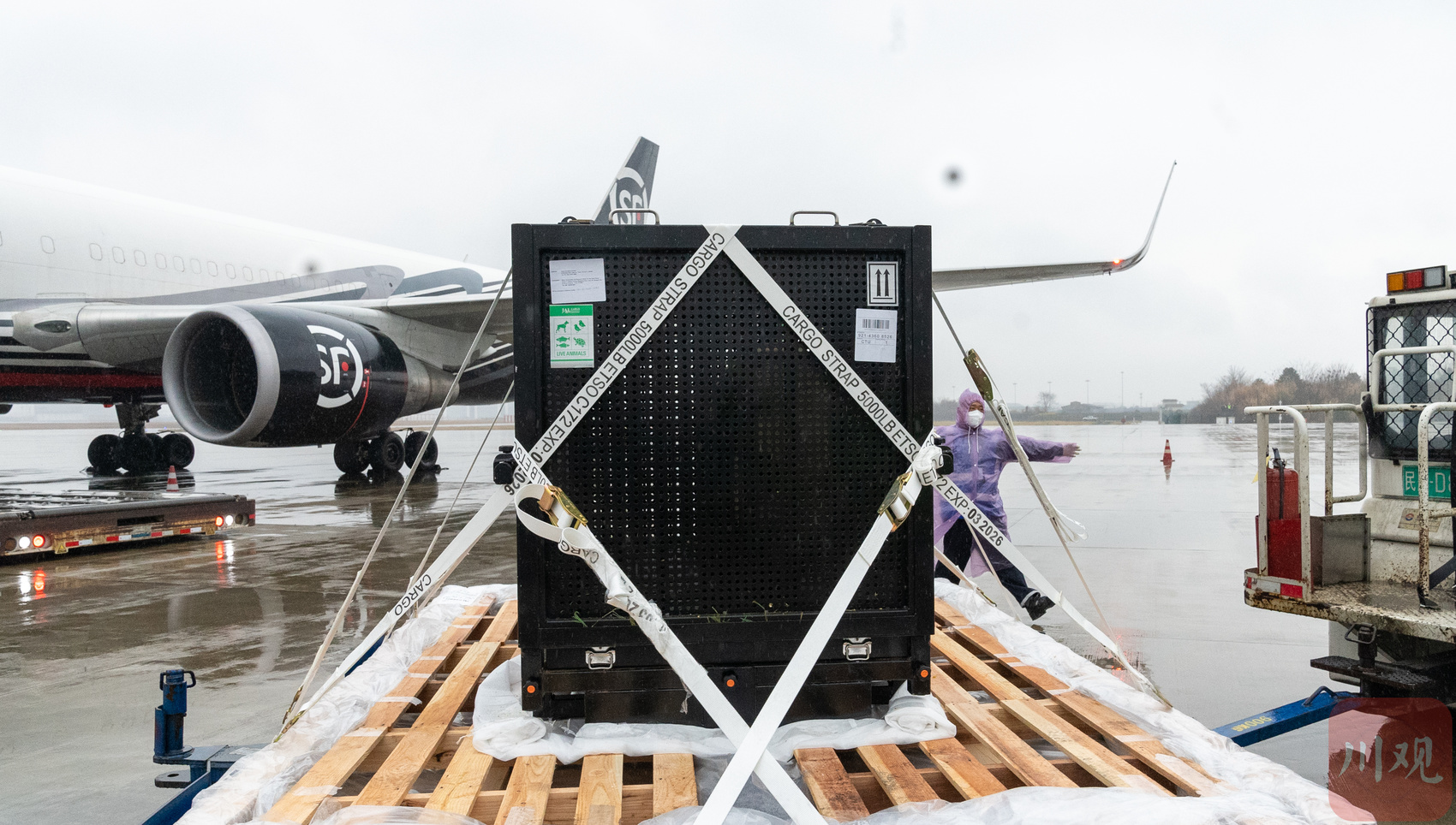 大熊猫“香香”落地成都双流国际机场。黄潇 摄