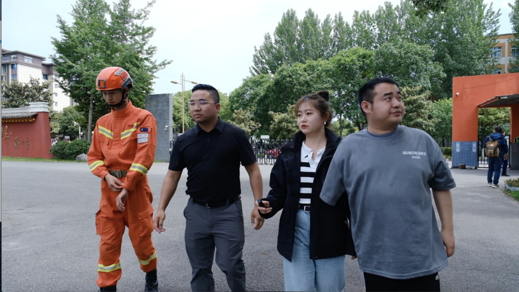 在北川中学,四人又“偶遇”了刚从学校出来的北川县消防救援大队教导员王旭和大队长蒲高森。两人都是“5·12”汶川特大地震的亲历者和救援者。