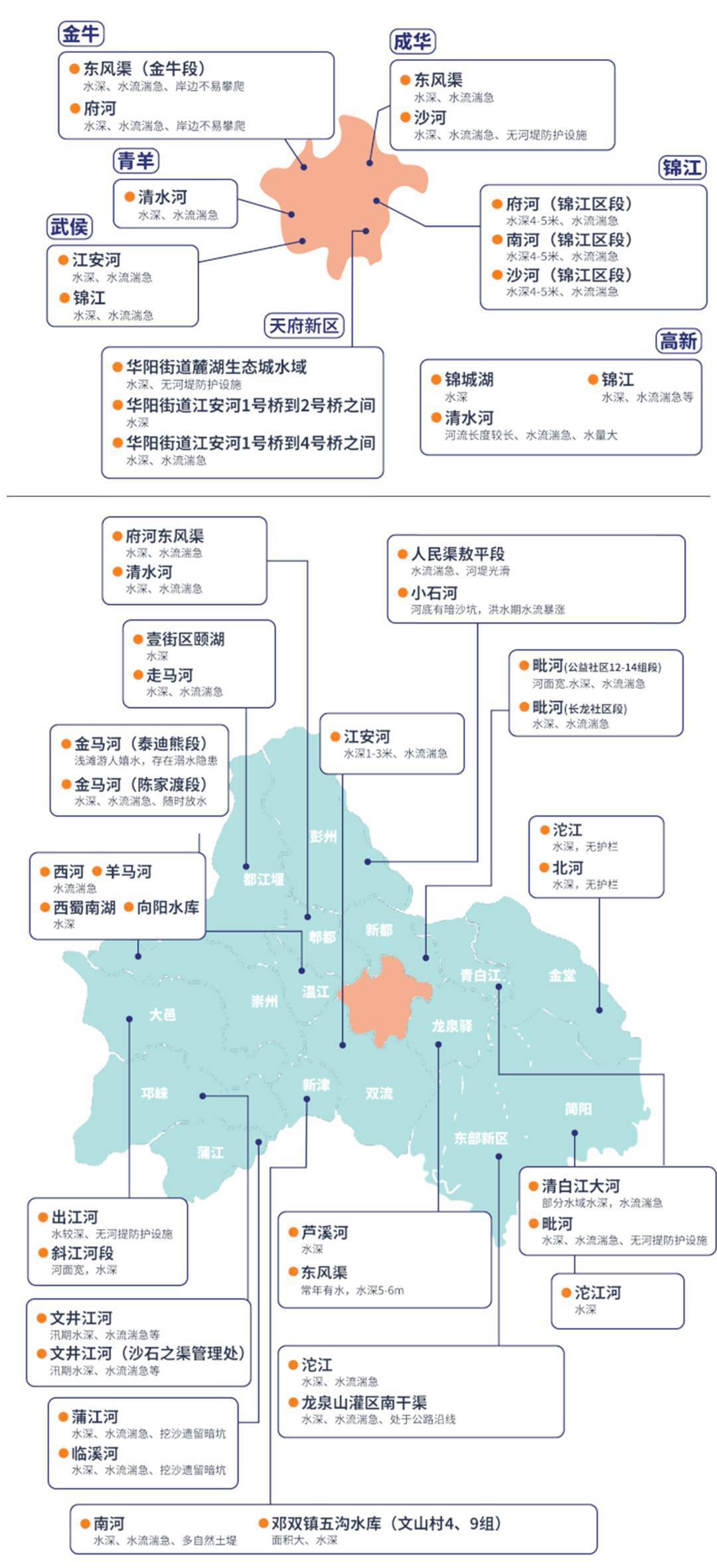 日前市教育局会同市水务局在全市部署开展2023年溺水危险点位摸排工作。经过各区(市)县的摸排和梳理,汇总形成了《成都2023年夏季学生防溺水地图》(以下简称《通知》)。