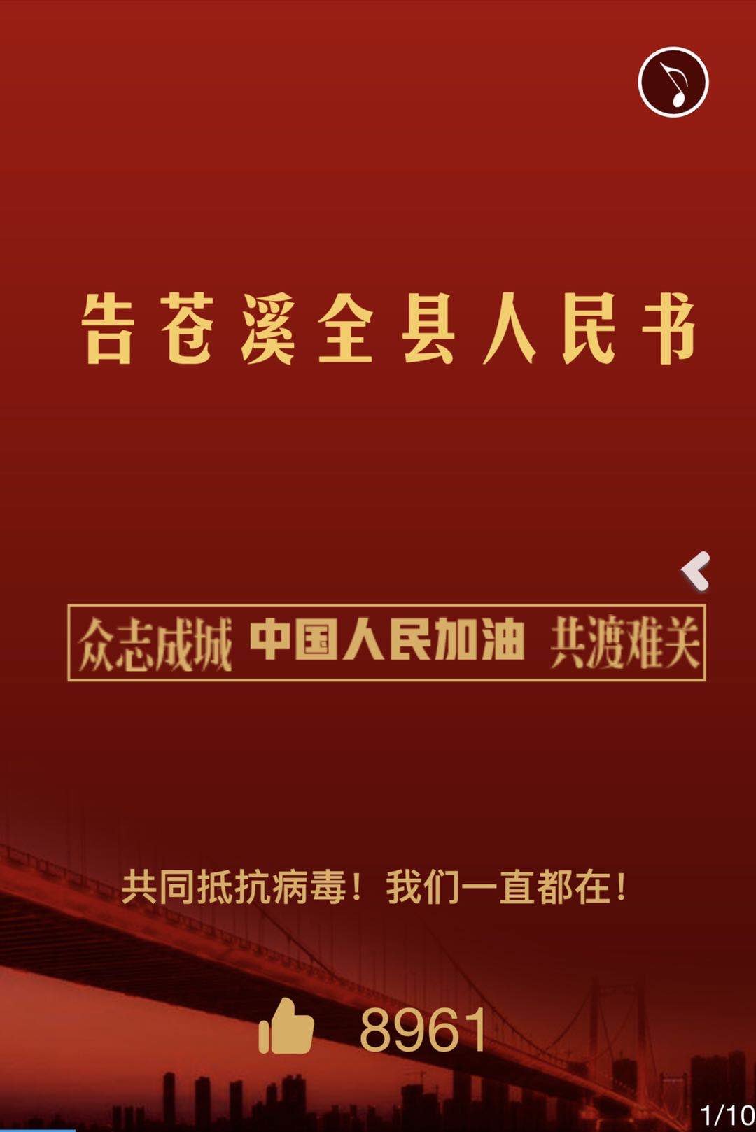 2月,正值输入型疫情的高发期,广元市苍溪县已出现输入型病例,为有效遏制疫情扩散蔓延,苍溪县融媒体中心首次运用H5形式制作告知性文书,将有关事项通告给全县人民,请全县人民和在苍人员支持配合。
