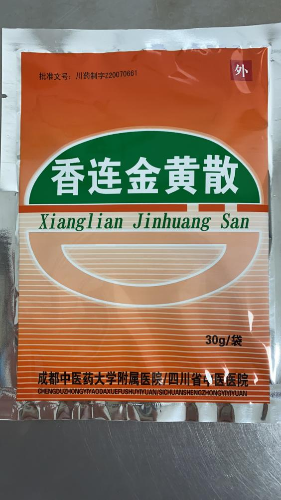 如果脚肿得厉害,还可以用金黄散(图2),热水调成芝麻糊一样(图3),敷在肿的地方,包扎起来,每天包四小时,很容易消肿。