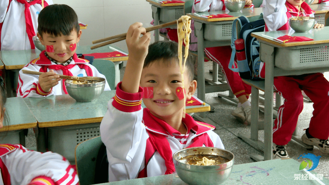 荥经县融媒体中心出品的《荥经“挞挞面”为祖国庆生》,经过精心策划、组织,通过多方采访、拍摄,通过一碗热气腾腾的“挞挞面”为祖国庆生,引起市民共鸣,也吸引游客前来游玩品尝。颛顼广场上,10张圆桌摆出“7 1”字样,市民们分享美味也分享着为祖国庆生的喜悦。