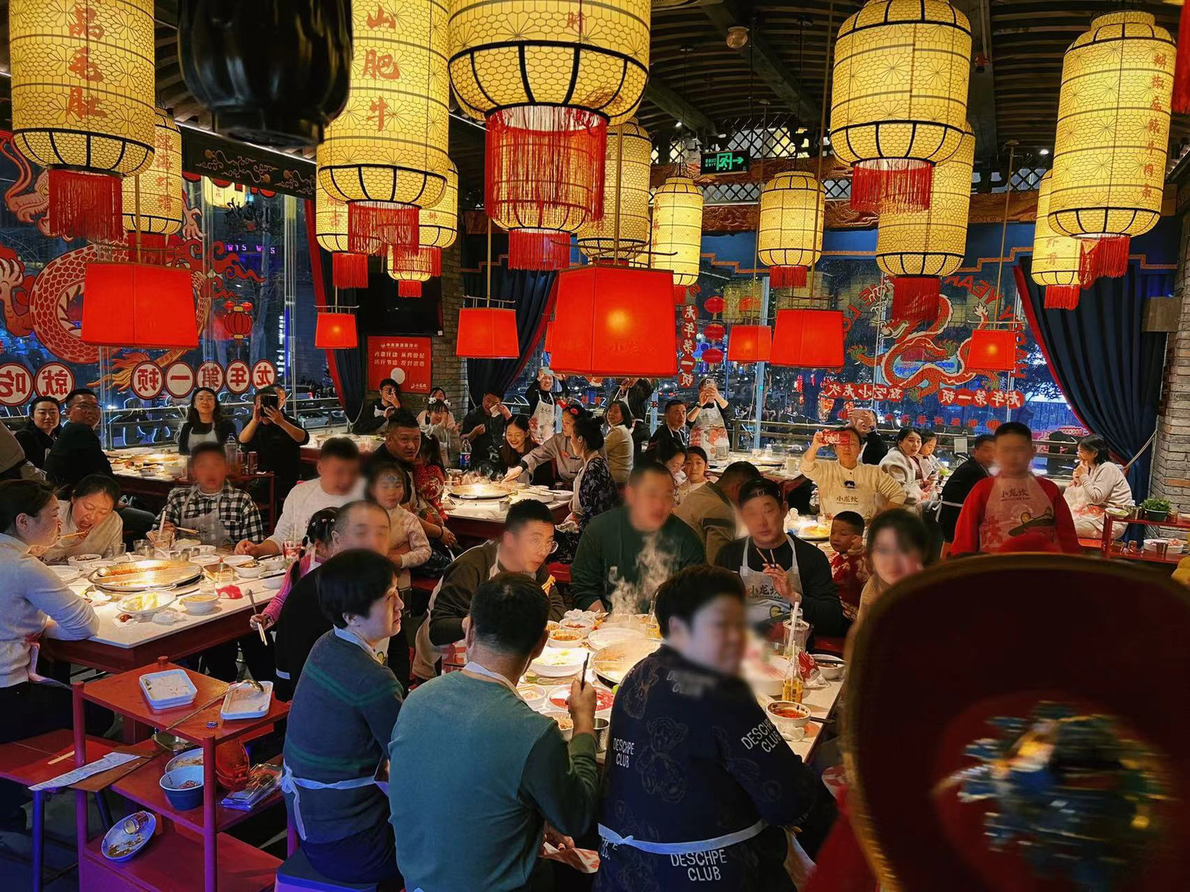 小龙坎提供的数据显示,2月10日至14日,小龙坎火锅成都全球旗舰店春节期间翻台率最高达820%,14日当天营收更是破纪录,较历年来最高值增长6%。据介绍,该品牌在2024年推出的龙年营销活动“龙年第一顿就吃小龙坎”,选择与国民IP故宫观唐联名,推出“金龙遇喜”龙形底料,更有联名餐具及限量周边大礼包,让市民与游客一边在成都买买买,还能体验到创新的麻辣牛油火锅。