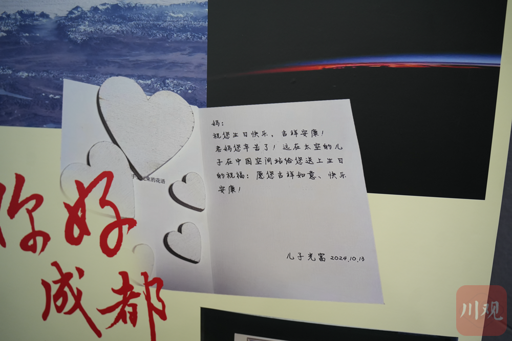 原来这张贺卡是叶光富在神舟十八号出征前,特意为母亲准备的惊喜。