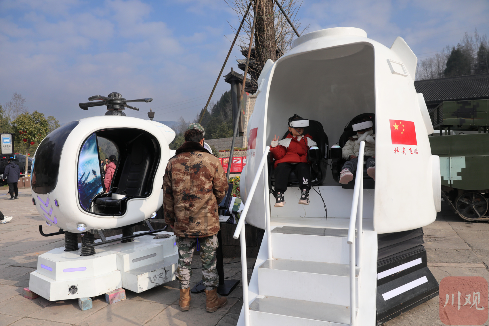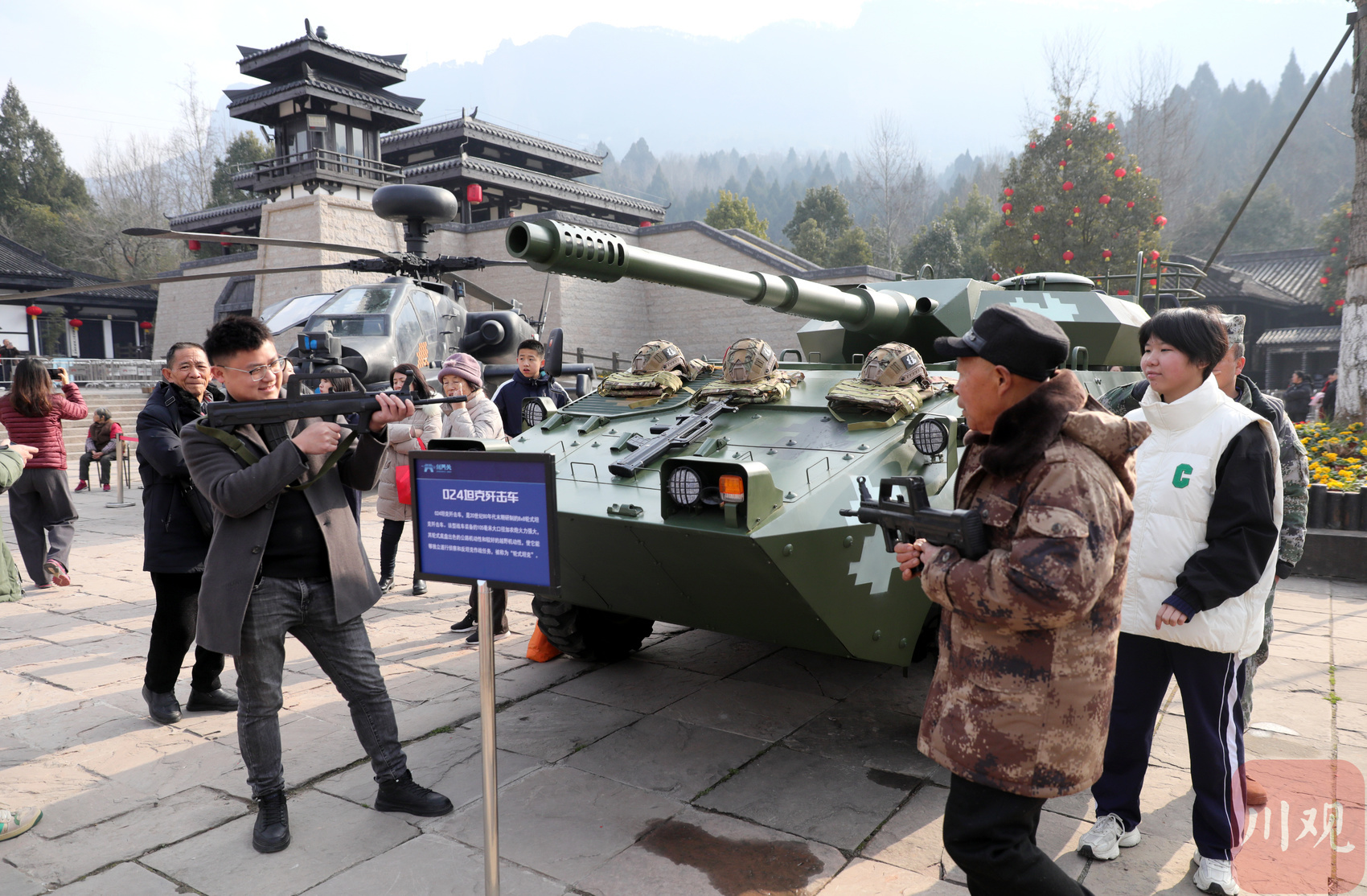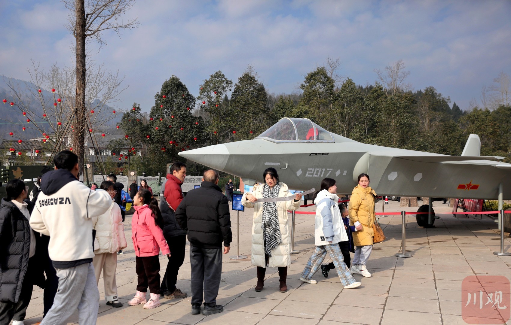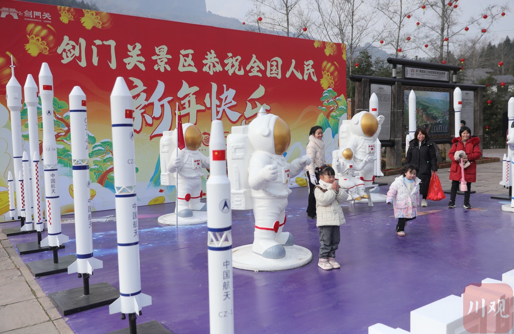 1月31日,剑门关景区北游客中心,一场“军事+航天”主题展吸引着众多的游客前来拍照打卡。