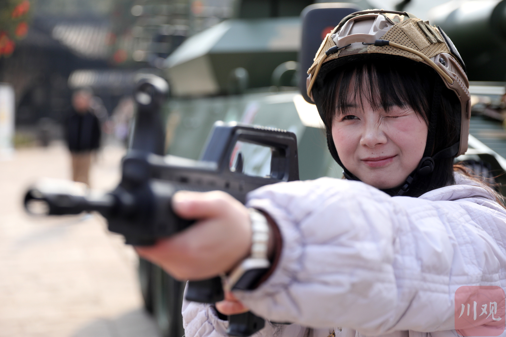 或手拿作战步枪站在歼-20下留影,或穿上作战服走进武直十驾驶舱,或坐在嫦娥舱内戴上VR眼镜构筑一个航天梦,或在火箭区看看长征火箭的发展……专题展不仅成为“小孩子”们军事及航天航空的梦幻乐园,也受到了众多“大孩子”们的青睐,让他们“暂时圆了个当兵的梦。”