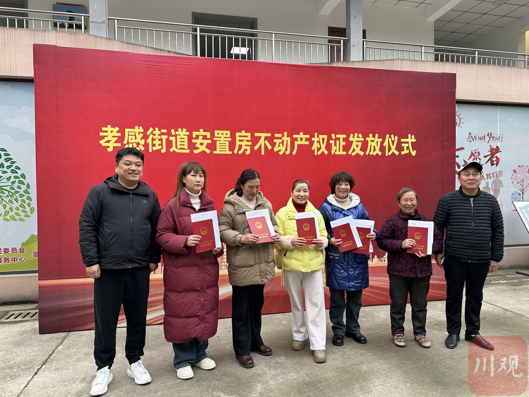 近日,德阳市旌阳区孝感街道居民们迎来了翘首以盼的喜事,住了近九年的房子终于拿到房本,“悬”在800余户业主心中的一块“大石头”终于落了地。3月10日上午,旌阳区孝感街道举行安置房不动产权证集中发放仪式,将不动产权证陆续发放到居民手中,赢得了居民们的一致好评。