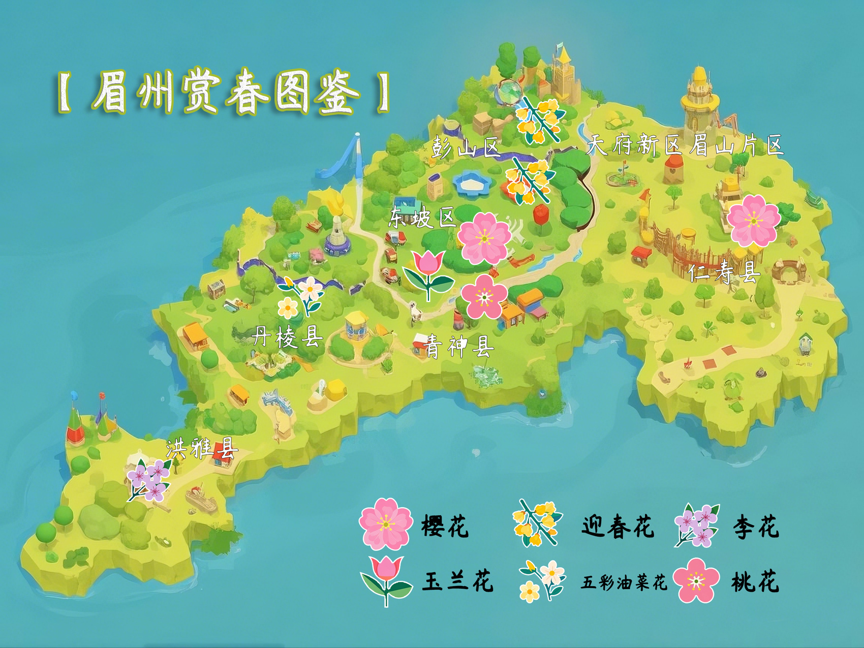 从唐宋驿道的郁金香到东坡文脉的樱花雨,从虬枝桃林的狂草到五彩田野的抽象画,眉州的春天始终在解构与重建美的定义。当我们凝视最后一朵春花在暮色中飘落,也许会明白,追花之旅的本质,是见证时光如何将刹那芳华酿成永恒记忆。那些被镜头定格的落英,那些与花共舞的晨昏,终将在来年春风再起时,化作眉山人血脉里代代相传的春日基因。