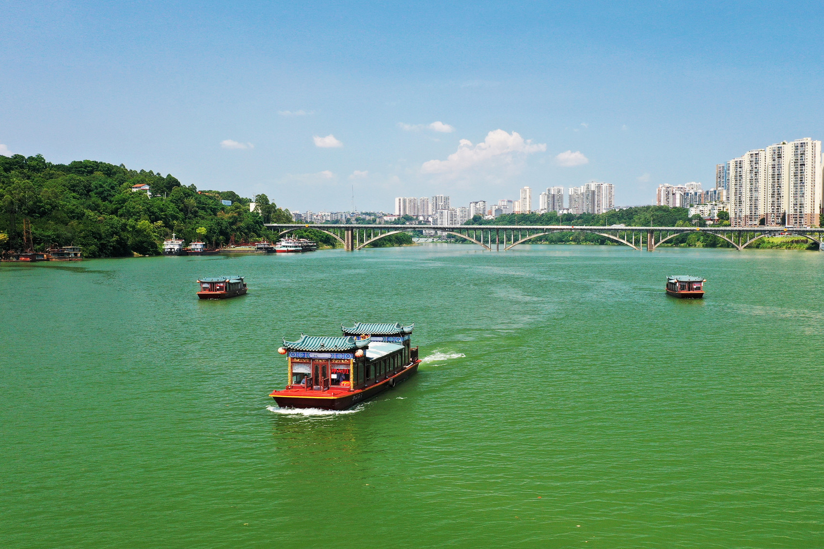画舫行驶在嘉陵江江面上。 (夏俊林 摄)