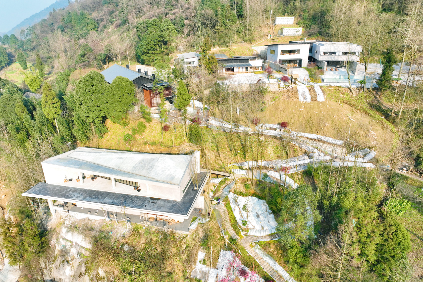 晓隐山居——地处华蓥山高登峰南麓,南连天意谷景区,北倚华蓥山旅游区,海拔约1100米,年平均气温17-18℃,整体气候凉爽宜人;以探索山野为主题,融入地质文化元素,打造住进石头和山野记忆里的民宿集群。