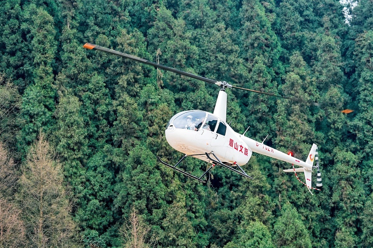 4月4日,随着一架观光直升机缓缓降落在瓦屋山游客中心,标志着眉山市首条跨场景低空观光航线试飞成功,低空经济应用场景实现新突破。