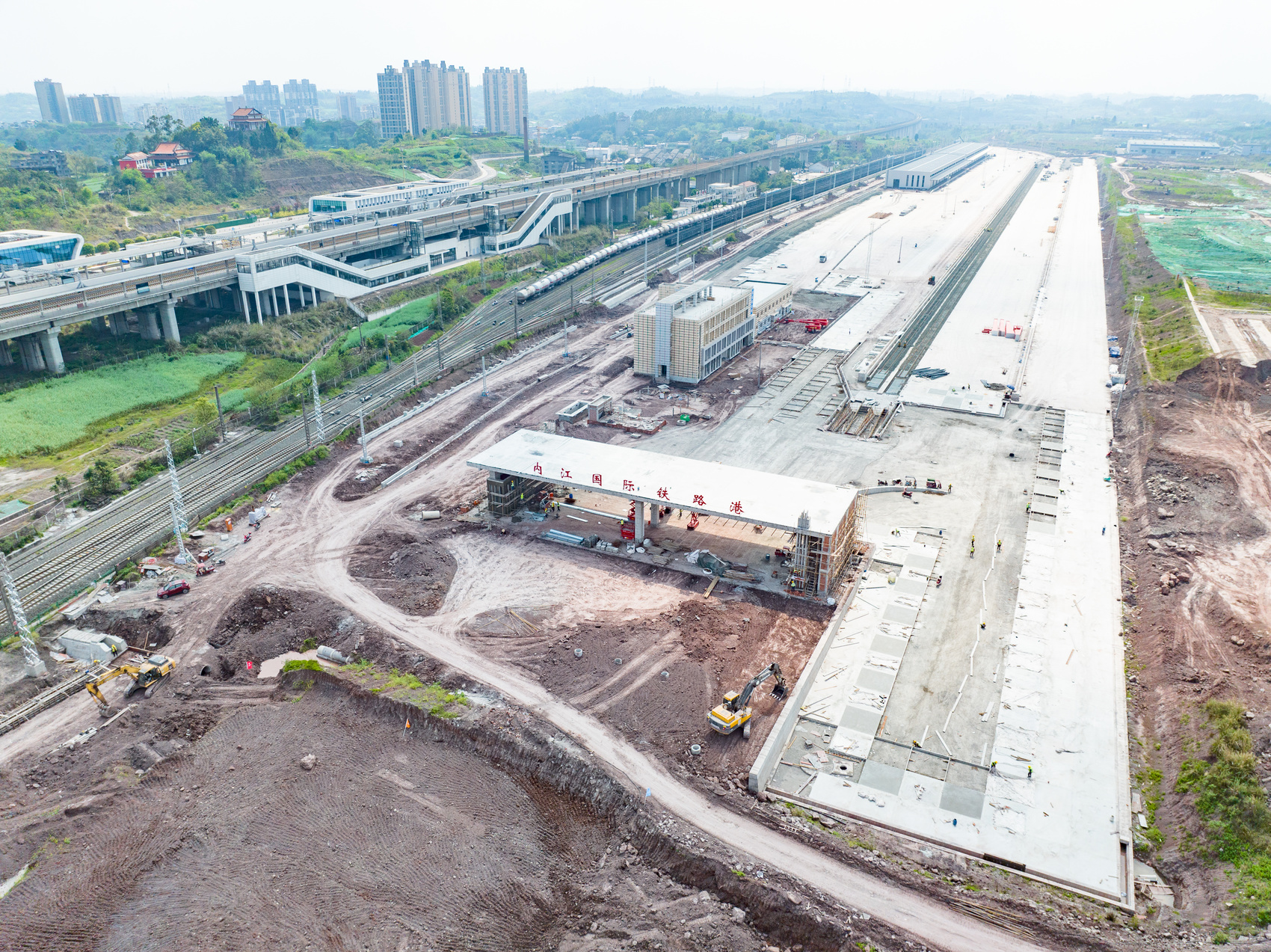 内江国际物流港铁路专用线建设现场。唐广 摄