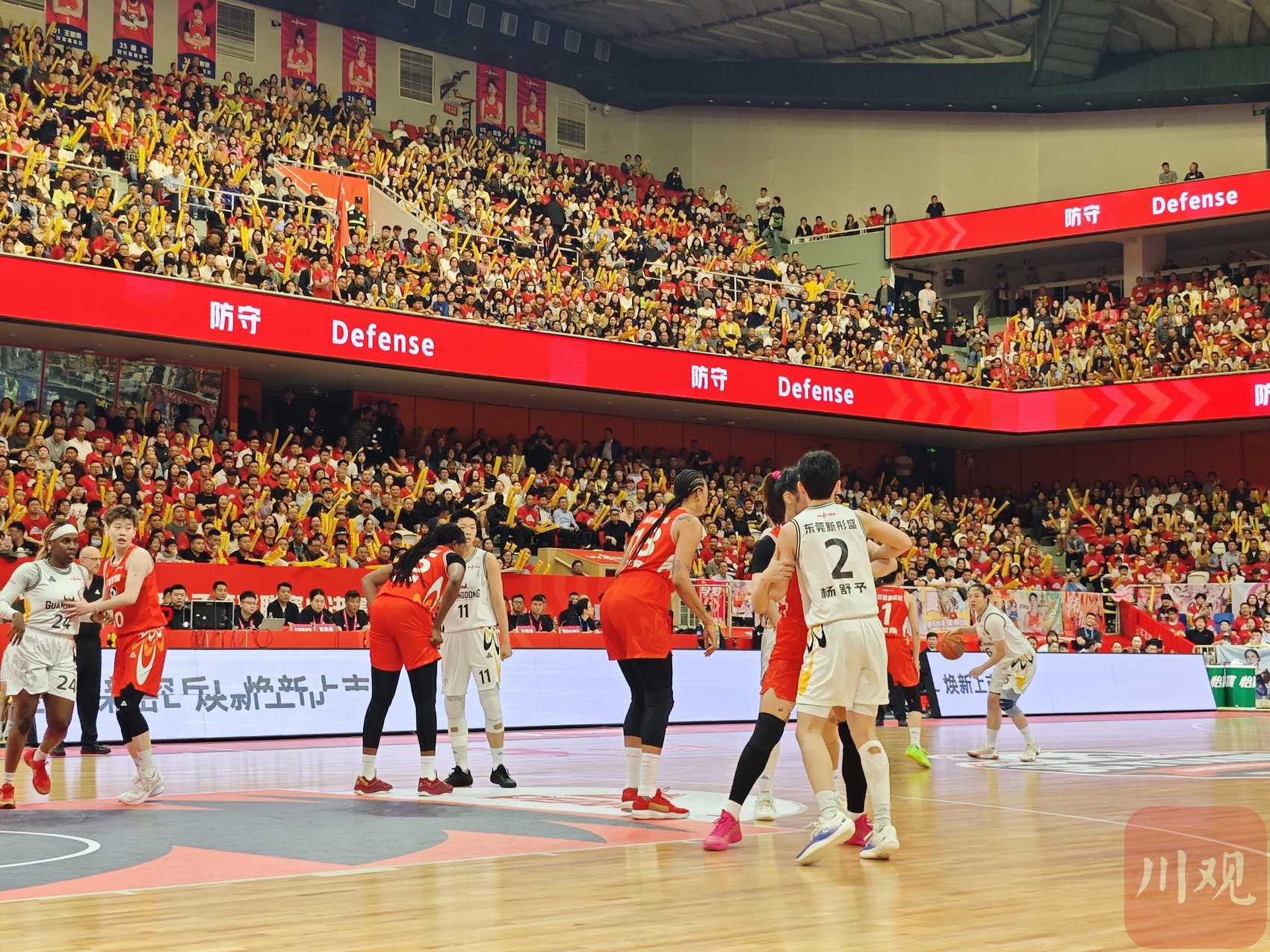 4月8日晚,2024-2025赛季中国女子篮球联赛(WCBA)总决赛第二场比赛,四川蜀道远达女篮对阵东莞新彤盛女篮。