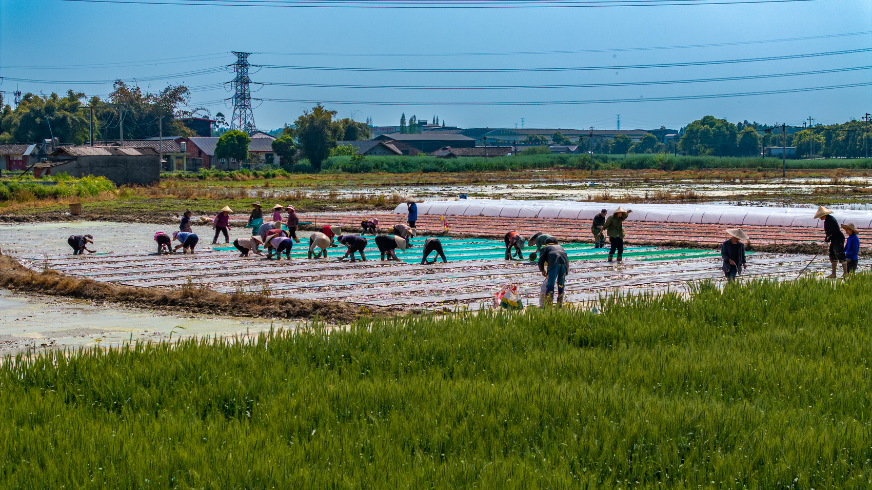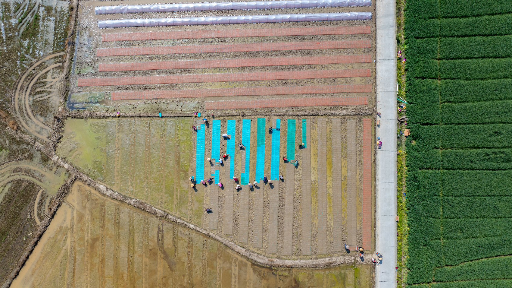 气温回暖,大地复苏,春耕春种也进入到繁忙阶段。4月10日,在眉山市东坡区思蒙镇镇南村的高标准农田里,几十名村民正忙着在育秧田里摆盘、浇水、撒种、覆土,田间地头开启“春忙”模式。