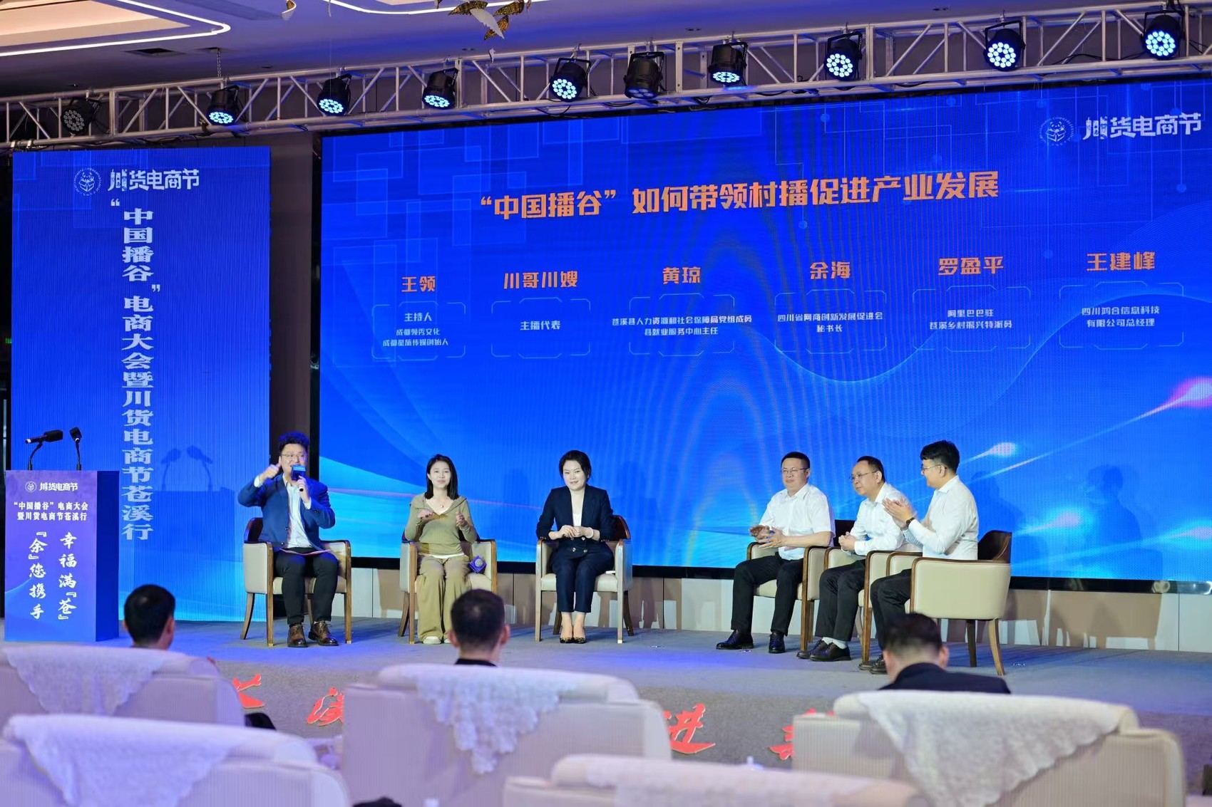 在电商发展论坛上,政府部门代表、行业组织代表、平台代表、主播代表和企业代表围绕“‘中国播谷’如何带领村播促进产业发展”这一主题,为苍溪电商产业发展出谋划策。中国播谷直播基地作企业入驻推荐。
