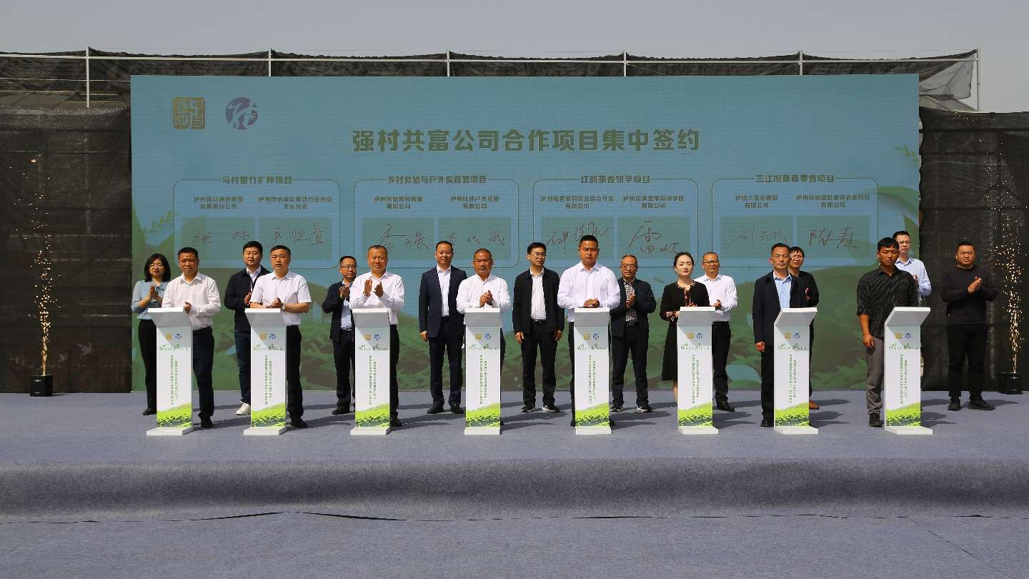 此处正在举办纳溪区新型农村集体经济产品产销对接暨强村共富公司项目推介活动,来自护国镇、丰乐镇、天仙镇、安富街道的4家强村共富公司正式运营,并与意向合作企业集中签约。