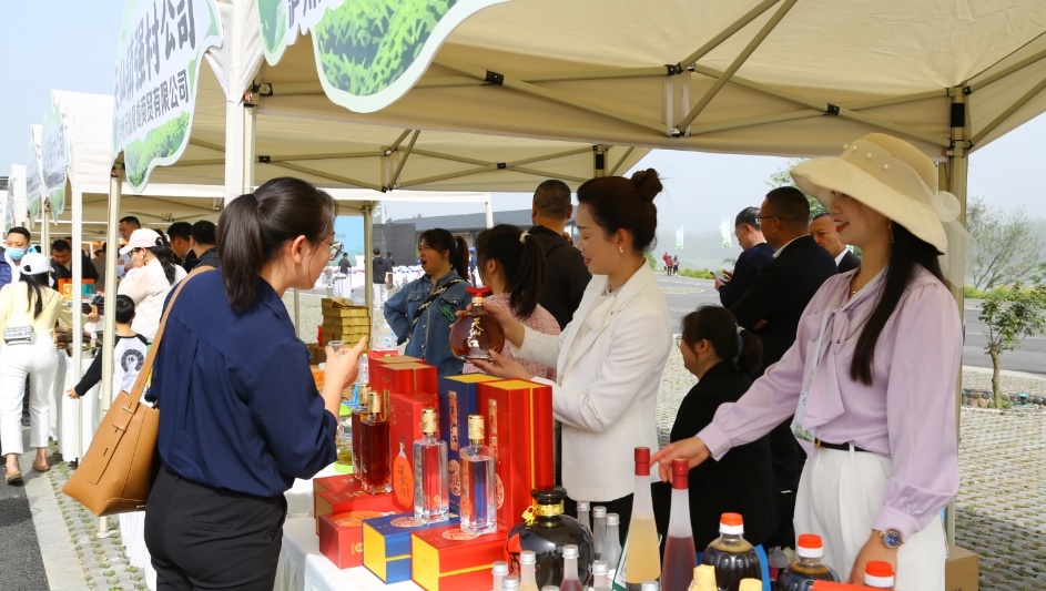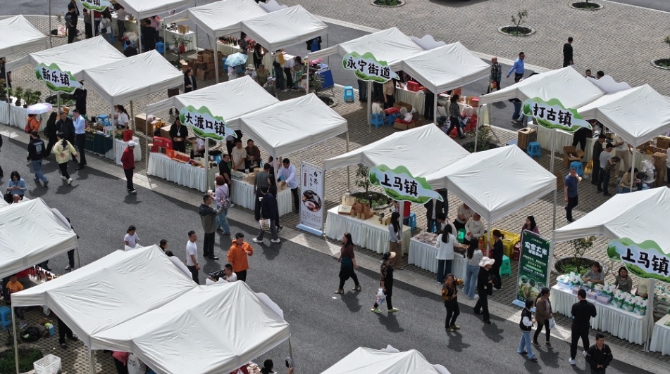 4月13日,在纳溪区安富街道三江村泸天化现代农业种植示范园内,原本金灿灿的油菜花田已蜕变成油菜籽,随着生产便道前行,热闹的小集市闯入视野。上马镇、丰乐镇、护国镇等13个镇(街道)摆好了自家的“拿手好菜”,生态大米、雷竹笋、茶叶、草莓......纷纷亮相,待人前来品尝。