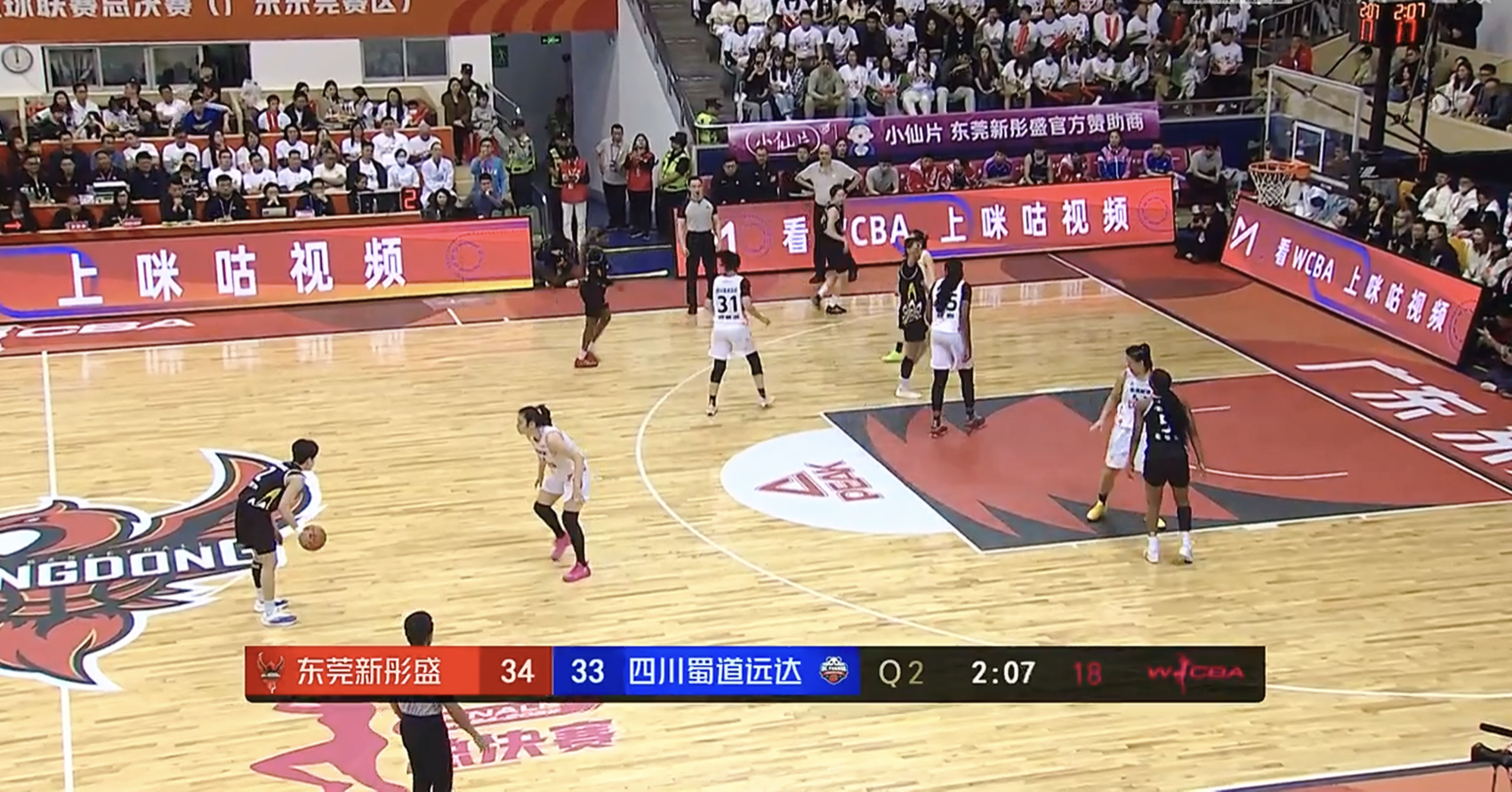 开场后,双方的防守拼抢都非常凶猛,对进攻球员施压力度较大,前五分钟的得分效率并不高,四川女篮和东莞女篮分别只得到5分和7分。东莞女篮老将沈怡和四川女篮老将坎贝奇在第一节后半段的亮眼表现分别帮助球队得分。四川女篮第一节以16:18暂时落后。第二节开始后,四川女篮状态提升,连续三分球命中反超比分,随后东莞女篮通过更为快速的反击再度超出比分。四川女篮以35:36结束上半场。