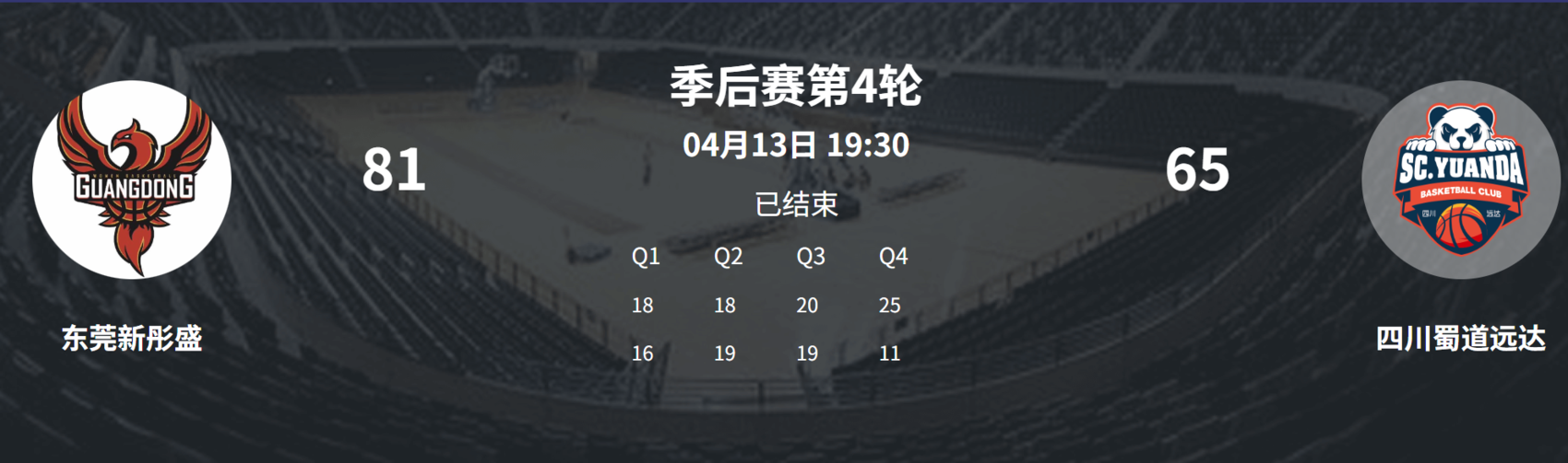 4月13日晚,在东莞大朗体育馆, 2024-2025赛季中国女子篮球联赛(WCBA)总决赛进入第4场比赛的争夺。四川蜀道远达女篮远赴客场,迎来同东莞新彤盛女篮关键一战。四川女篮65:81不敌对手,大比分1:3告负,以联赛亚军的成绩为本赛季收官。