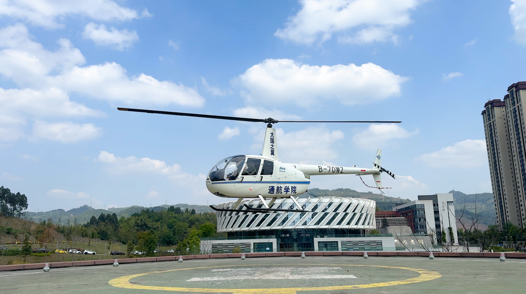 直升机搭载游客正在起飞