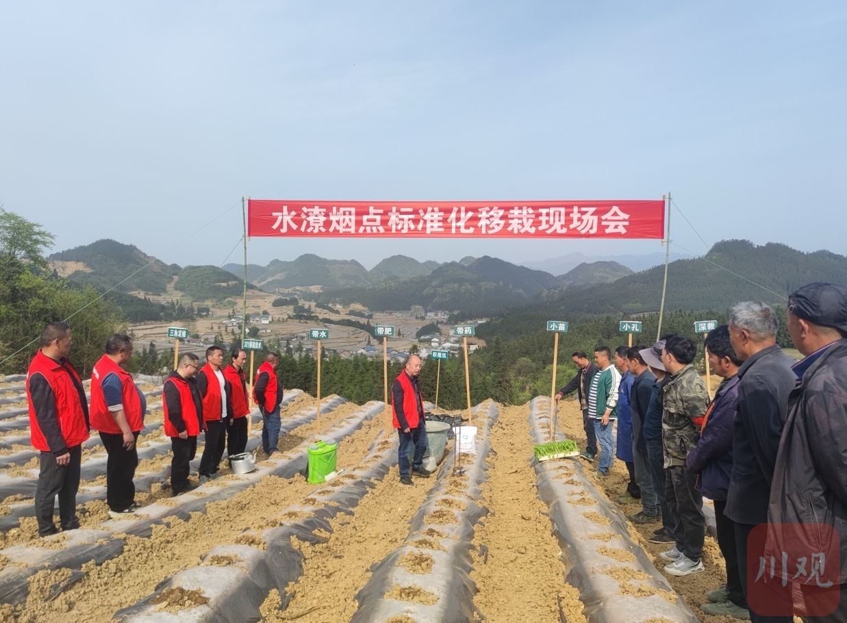 4月15日,在泸州市叙永县水潦彝族乡高坪村的烤烟地里,一场别开生面的烤烟移栽培训会正在进行。水潦烟点干部职工、烤烟技术员和种植农户等齐聚田间,观摩标准化烤烟移栽操作流程,交流种植经验。