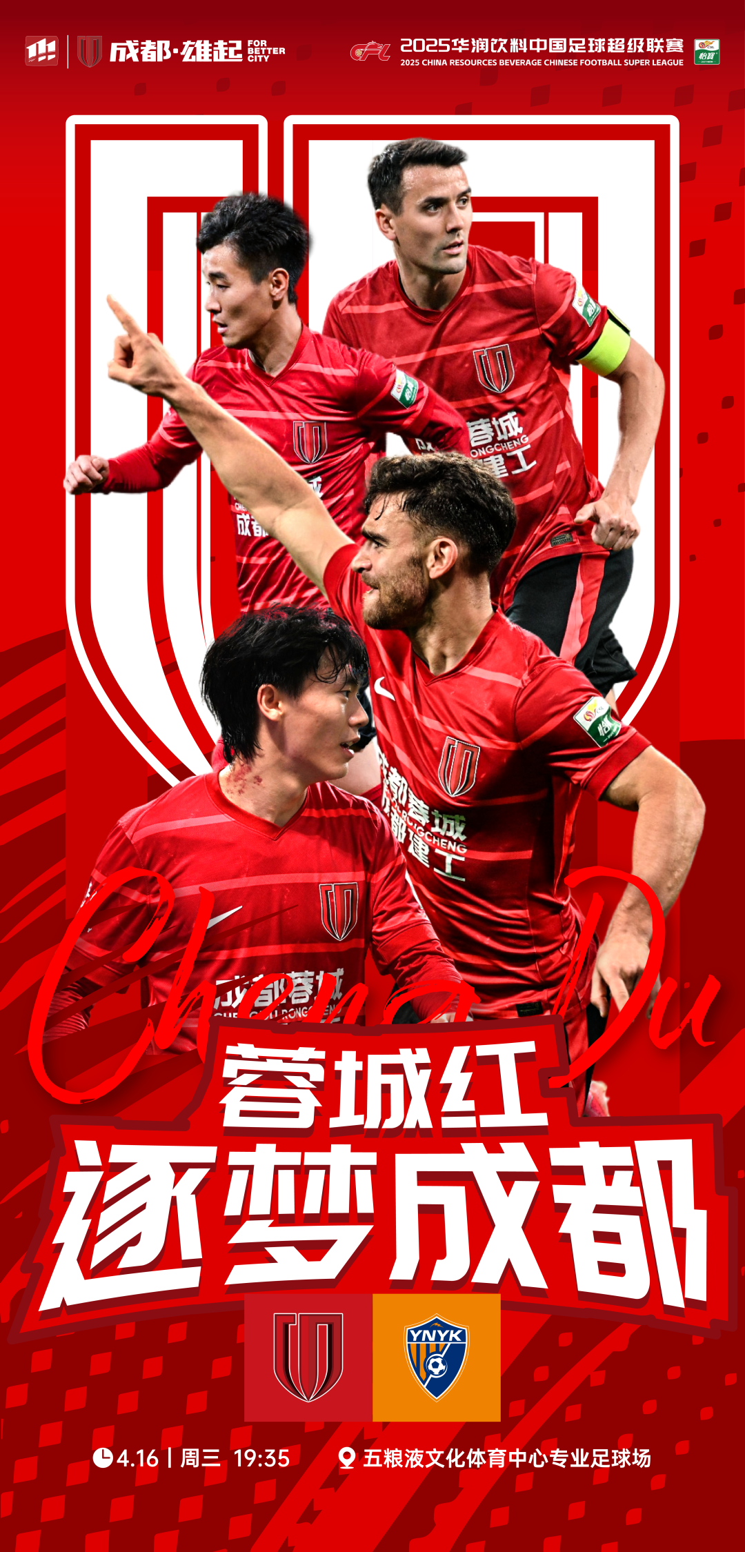 4月16日,2025赛季中国足球超级联赛第7轮全面开战。成都蓉城回到主场迎战升班马云南玉昆。这场时隔多年的中国足坛顶级联赛“西南德比”,虽然因为双方实力的差距被外界视为没有太多的悬念,不过比赛过程却一波三折,周定洋上半场补时阶段打破僵局,费利佩错失点球,侯永永全场比赛读秒阶段扳平比分,最终,双方1:1握手言和。