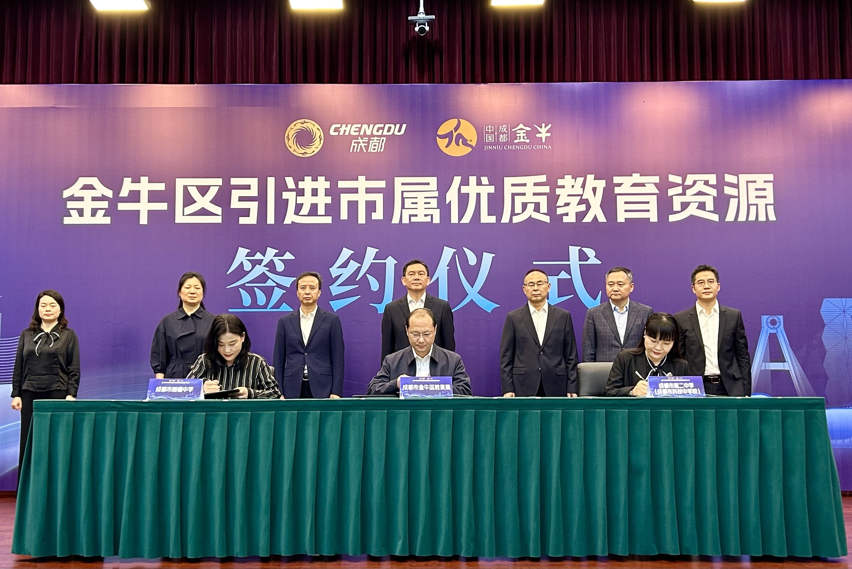 4月16日下午,成都市教育局与金牛区签署协议,共建成都二中新校区。树德中学、成都二中分别与金牛区教育局签署合作办学协议。
