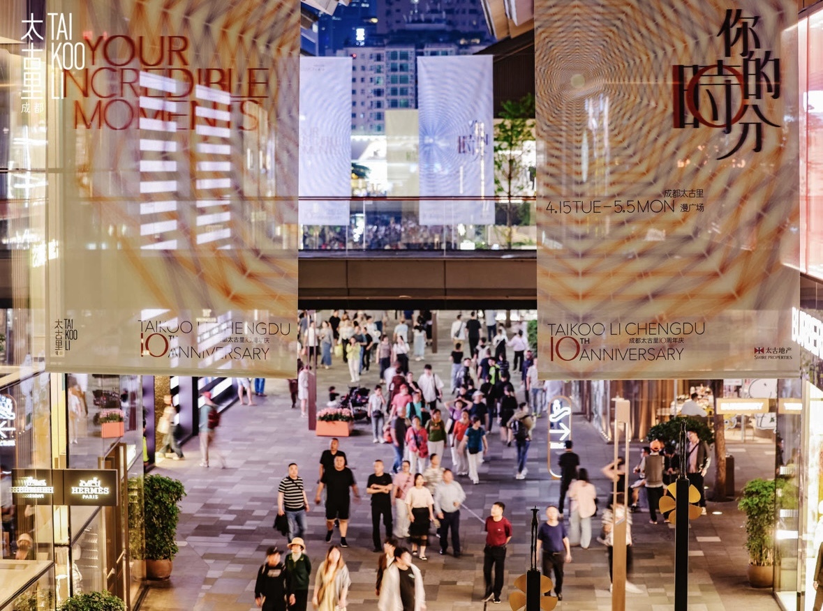 正是持续将在地文化、艺术审美融入商业的方方面面,十年间,成都太古里探索出高端商业空间之公共性、文化性的“形神兼备”,逐步蝶变为世界级零售地标之一。自2015年开业以来,成都太古里年均接待访客逾3000万,为八方来客提供独具一格的购物与生活方式体验。