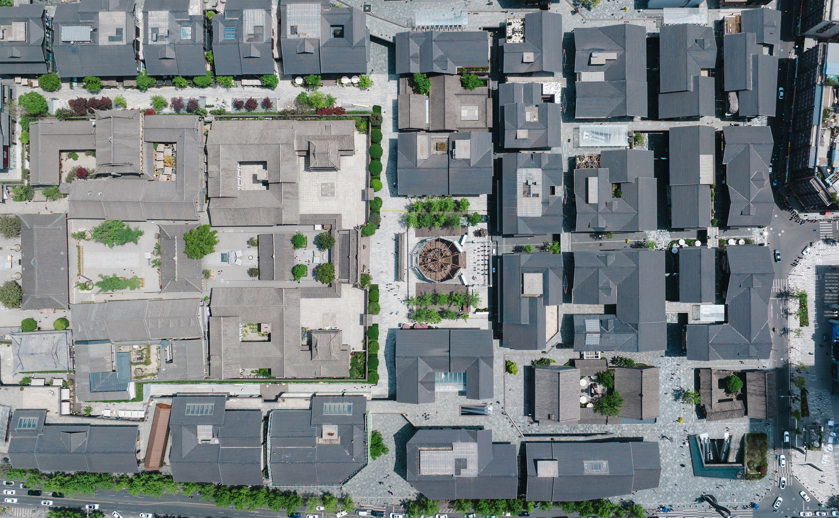 官方宣传介绍里,这里是引领成都消费国际时尚的标杆。从空中俯瞰,成都太古里极具川西建筑特色的独栋商业建筑群与千年古刹大慈寺相拥而立,深浅不一的青瓦坡顶阐释着新旧融合,展示着西南地区首发经济高地的独具一格。