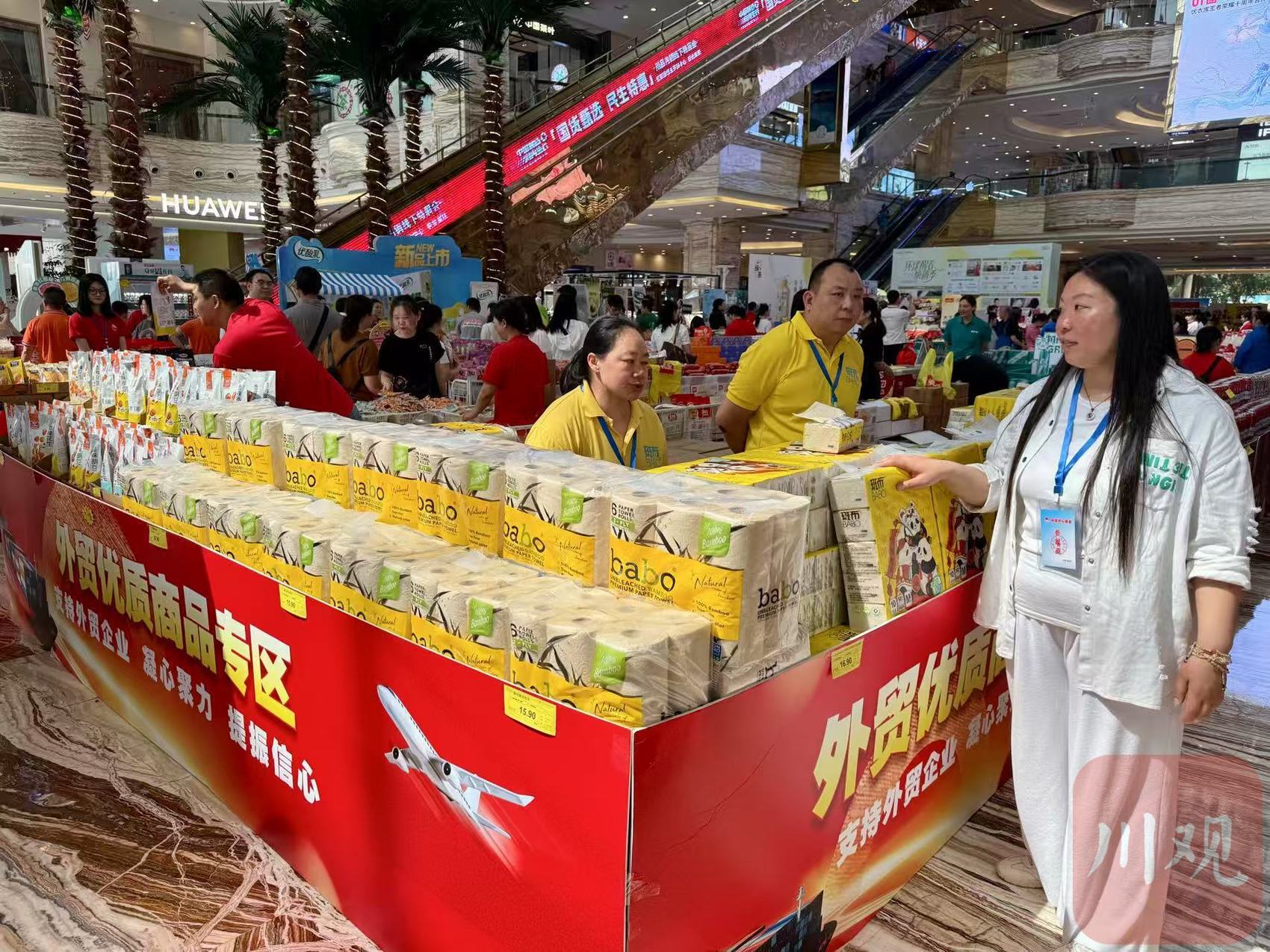 成都采阳实业有限公司总经理助理欧阳一鸣介绍,目前,采阳实业的出口转内销产品已在红旗连锁总府店外贸优质商品专区上架销售,并参加这次川品内销线下特展会,后续将在其他门店陆续上架销售。