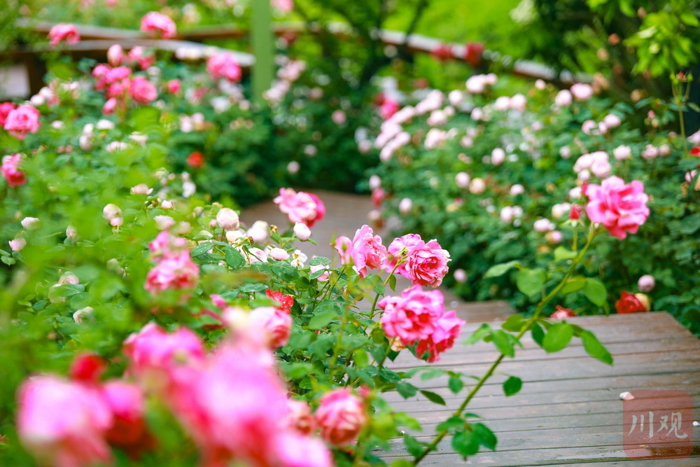 月季、玫瑰、蔷薇、三角梅、山桃草、马鞭草、丁香……5月9日,雅安市雨城区十里芳菲·野玫瑰村和省道104沿线的各色花朵开得正盛,满园花香绚丽非常,一路生花一路景,成为初夏雨城一道靓丽的风景线。
