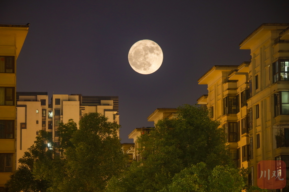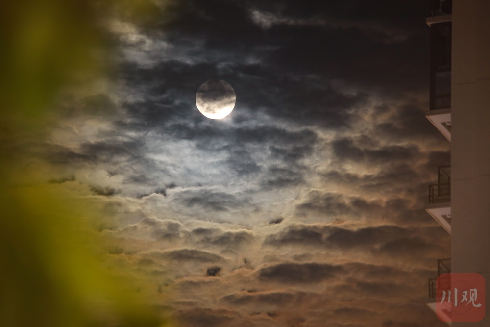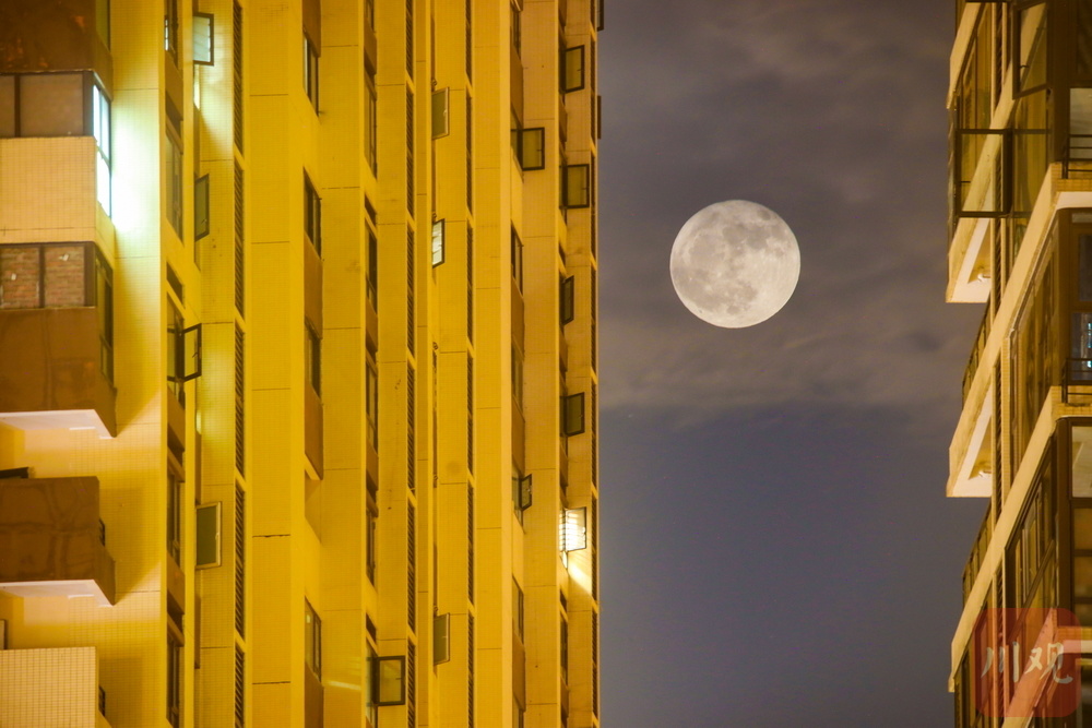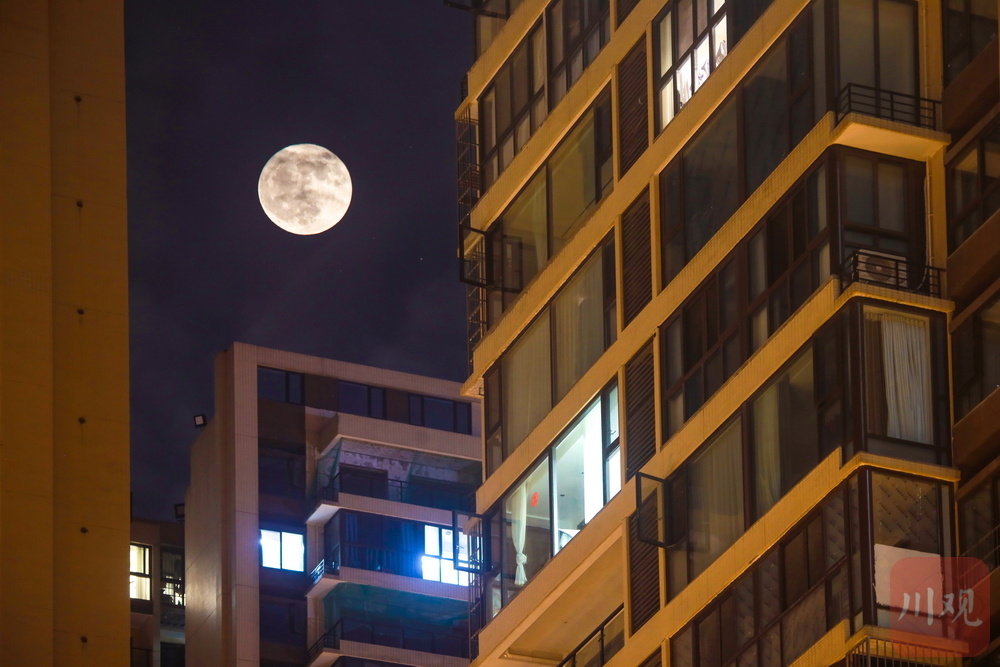 6月11日,农历五月十六,不少网友关注的本年度“最低满月”现身雅安夜空,与城市楼宇和流云交相辉映,美轮美奂。